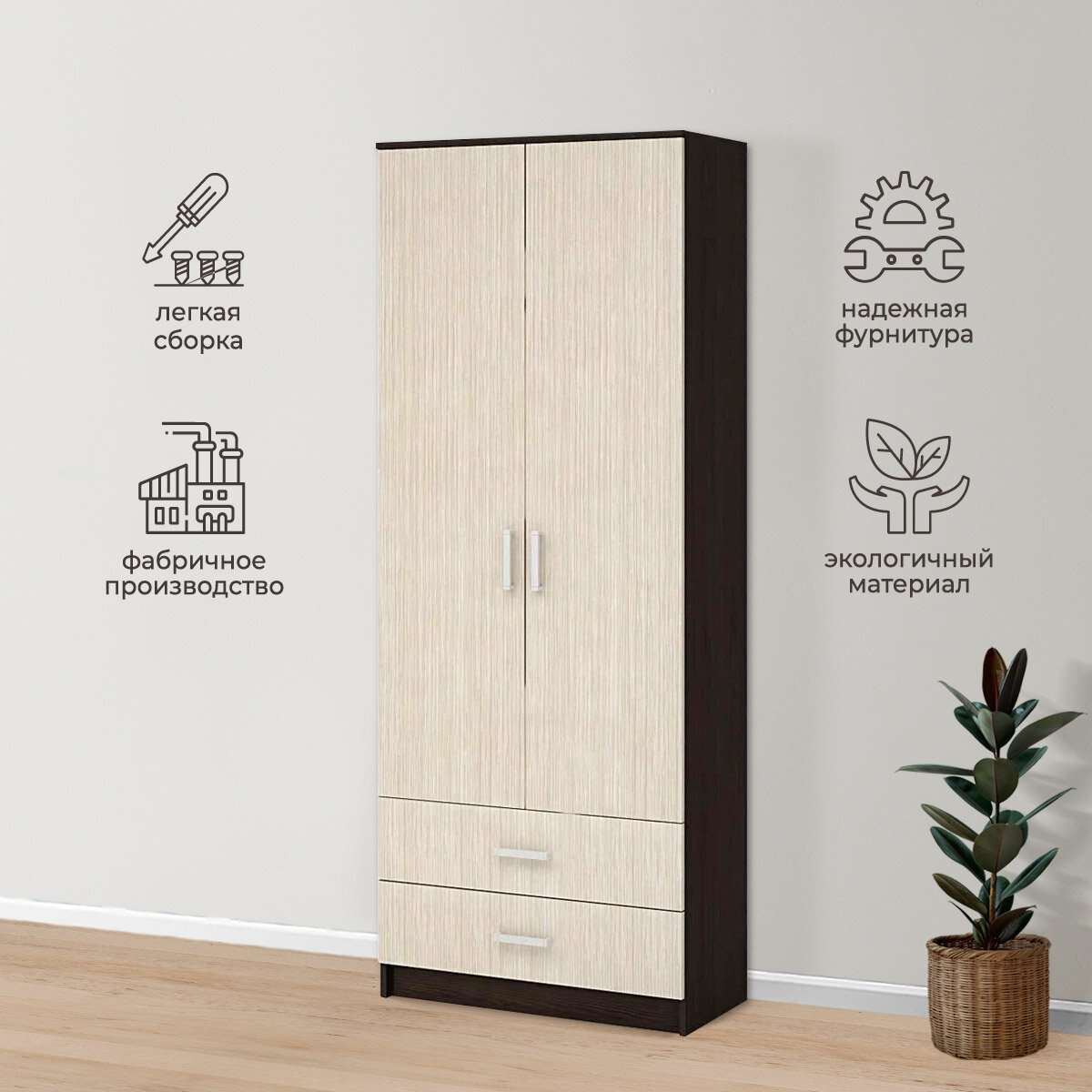 ШК-205 Машенька ЛДСП шкаф 2-х створчатый (800*2020*380) венге/дуб белфорт 10 130 ₽