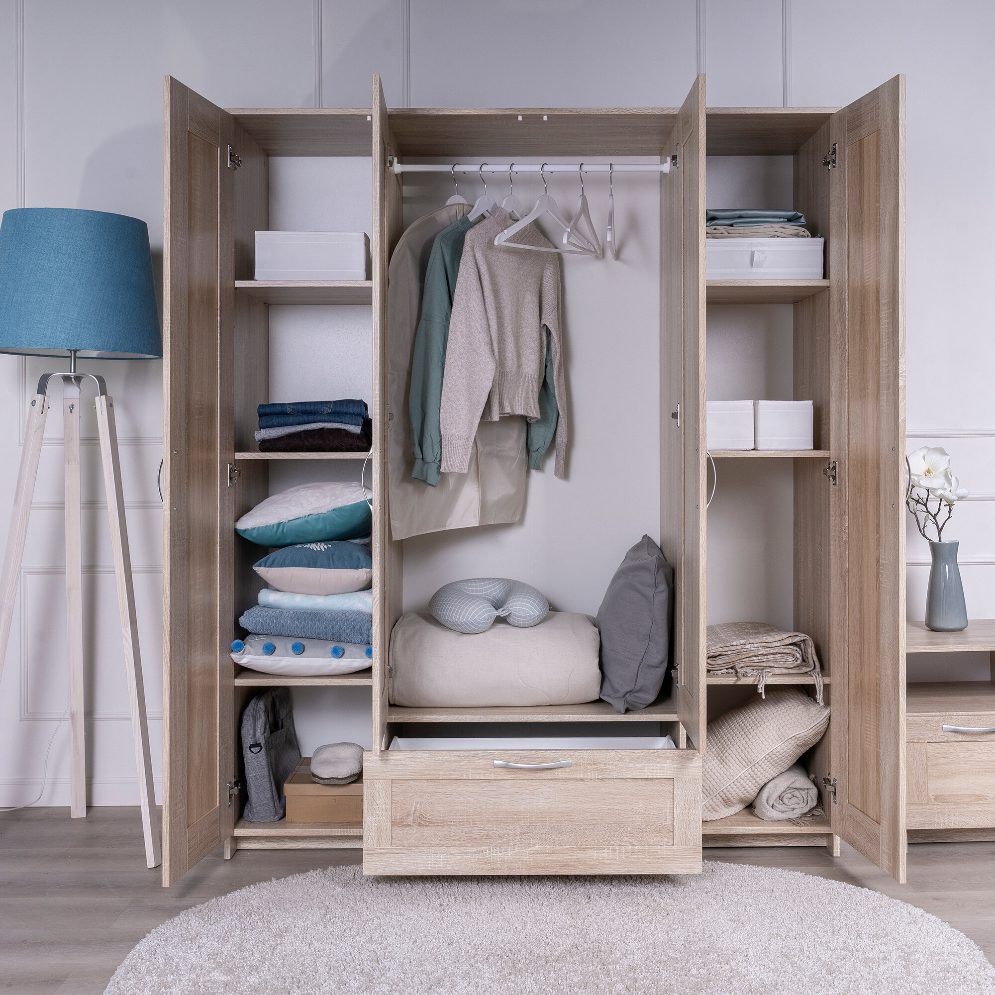 10 цен на Шкаф ГУД ЛАКК Сириус, 4 двери и 1 ящик с зеркалами, 190х156х50 см, дуб сонома