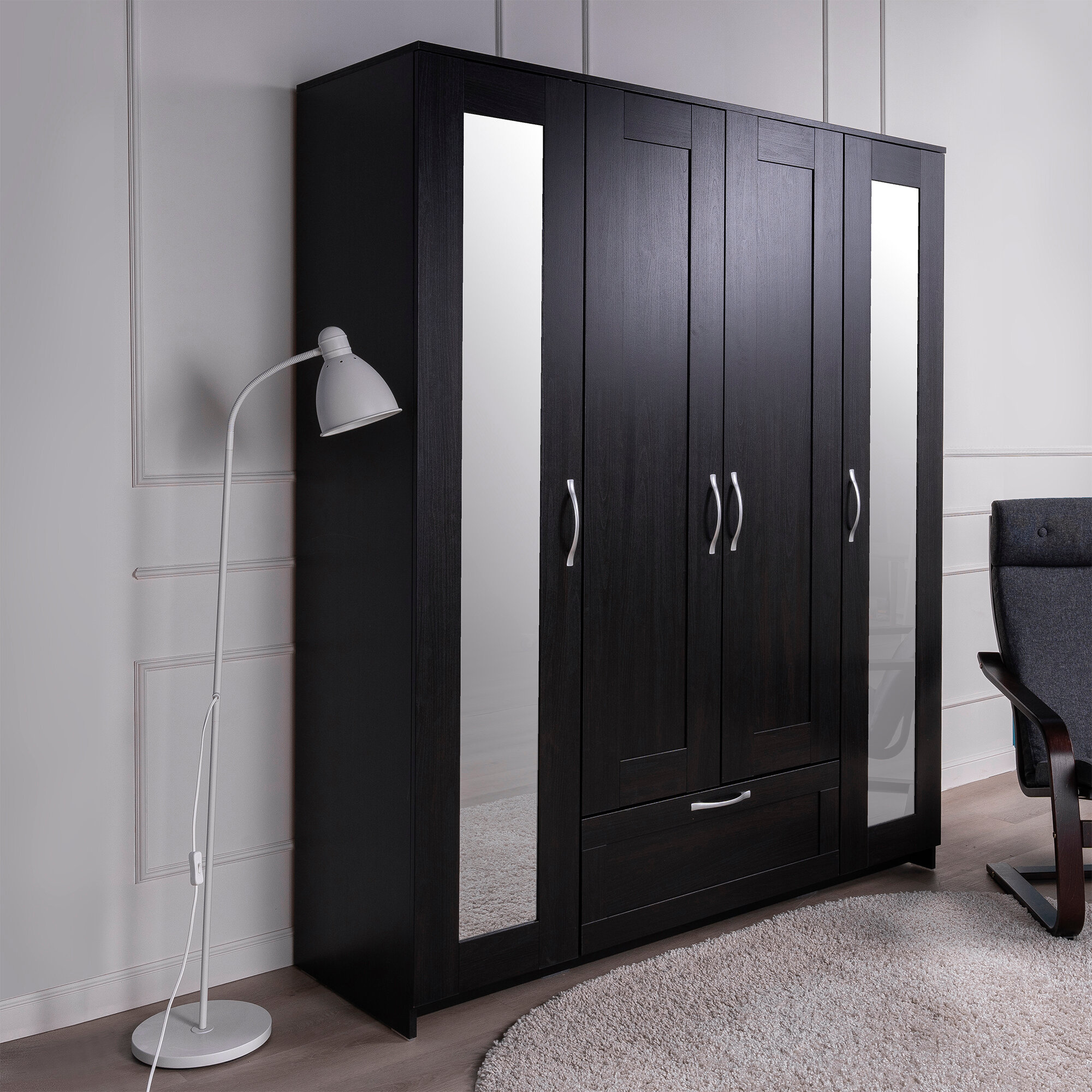 10 цен на Шкаф ГУД ЛАКК Сириус, 4 двери и 1 ящик с зеркалами, 190х156х50 см, черно-коричневый, дуб венге