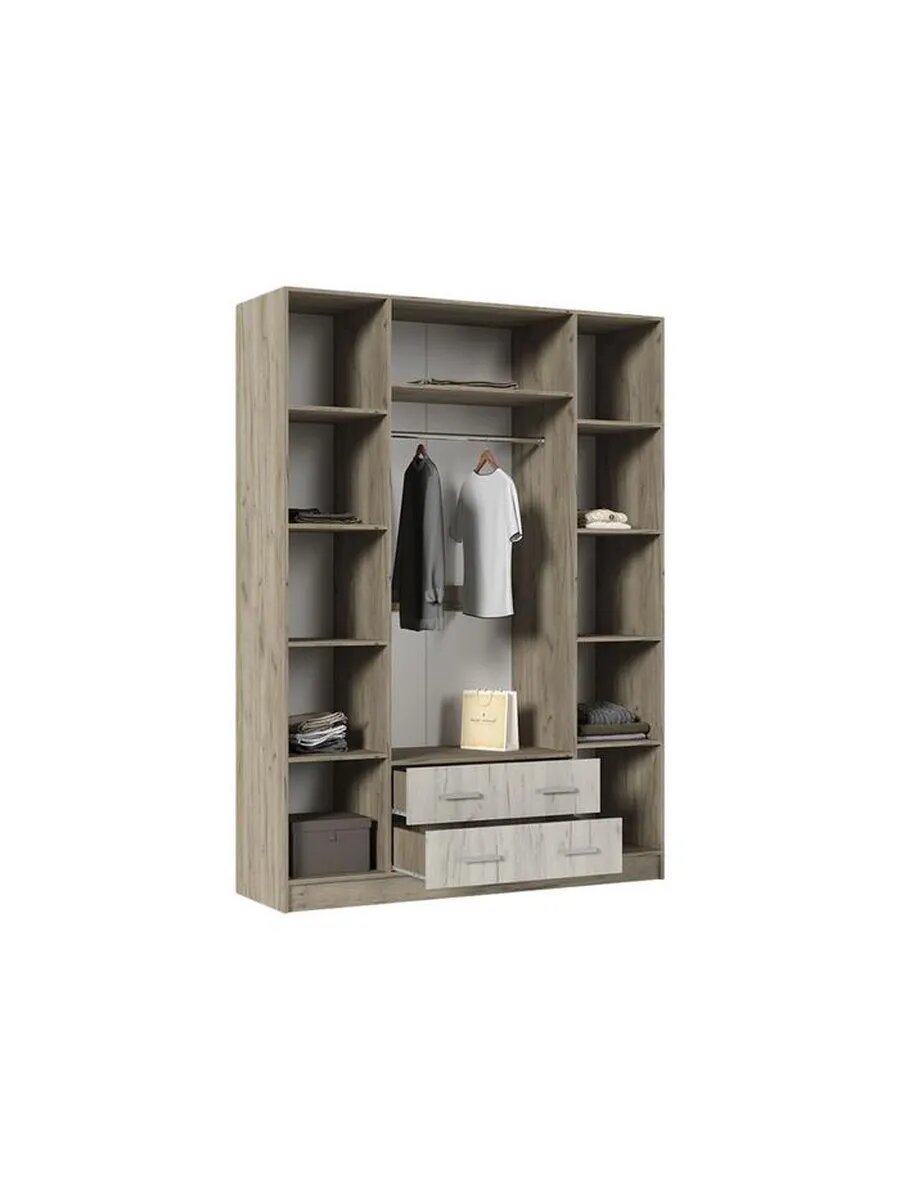 Шкаф для одежды распашной Нонтон Луас, 2 шт, 320 см, 20 полок и 2 штанги, эндгрейн / меланж