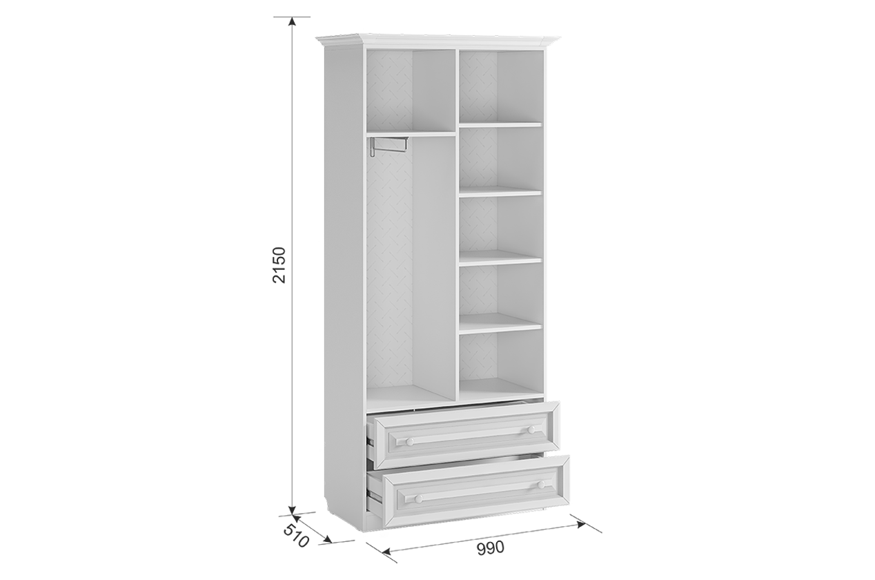 Шкаф двухдверный распашной Алиса с ящиками, штангой и полками, 99*51*215 см, Mebelson информация: