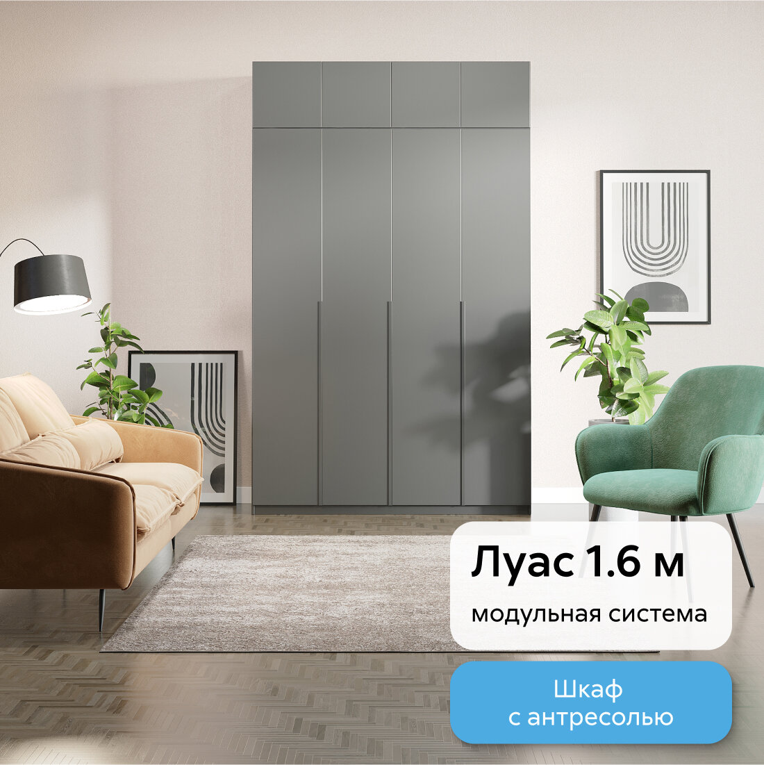 Шкаф для одежды распашной Нонтон Луас, с антресолью, 160 см, 11 полок и штанга, графит серый 23 990 ₽