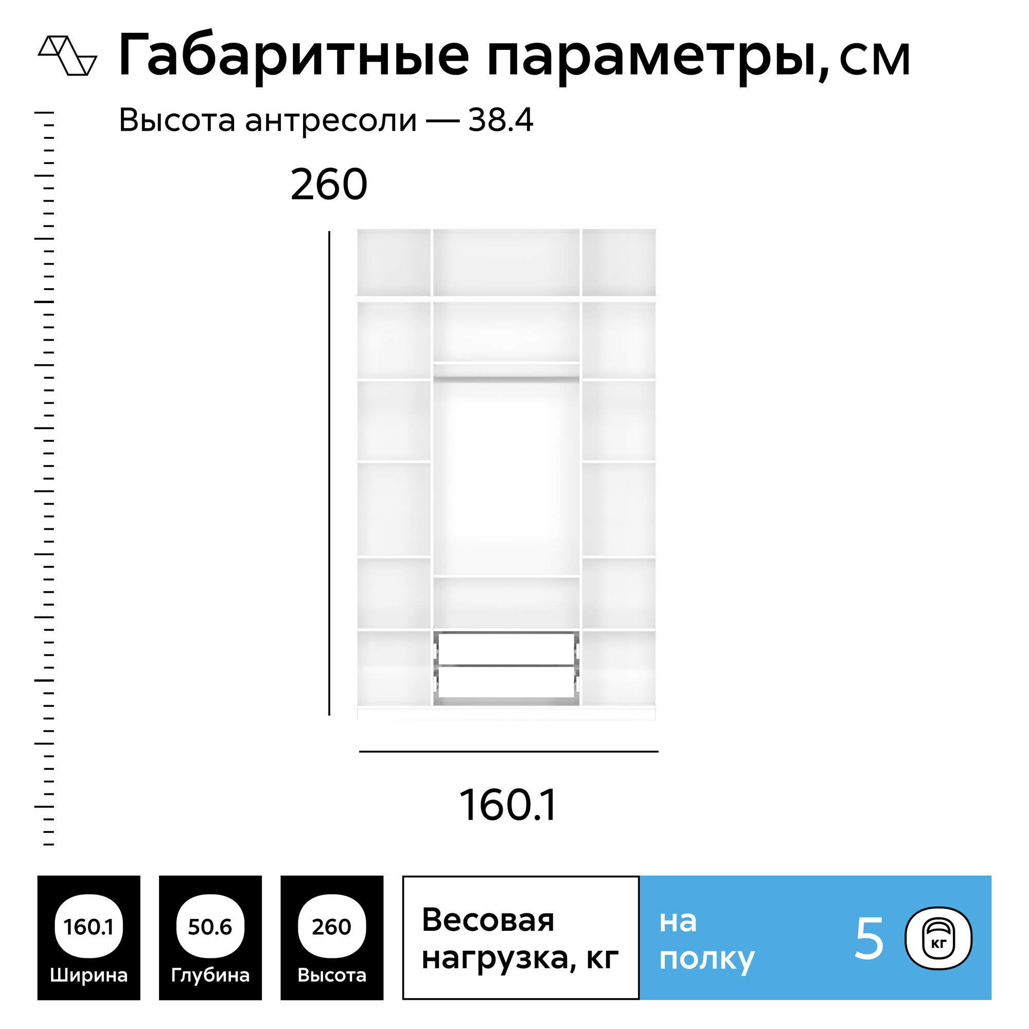 Шкаф для одежды распашной Нонтон Луас, с антресолью, 160 см, 11 полок, 1 штанга, 2 ящика, белый глянец информация: