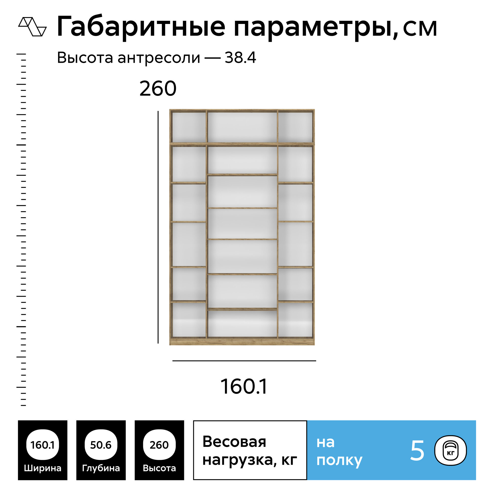 10 цен на Шкаф для одежды распашной Нонтон Луас, с антресолью, 160 см, 13 полок, дуб золотой