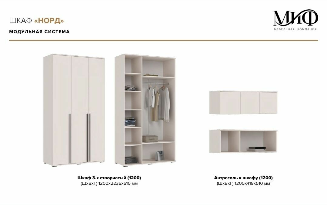 10 цен на Норд Шкаф 3-х ств.(1200) (Кашемир Золото)