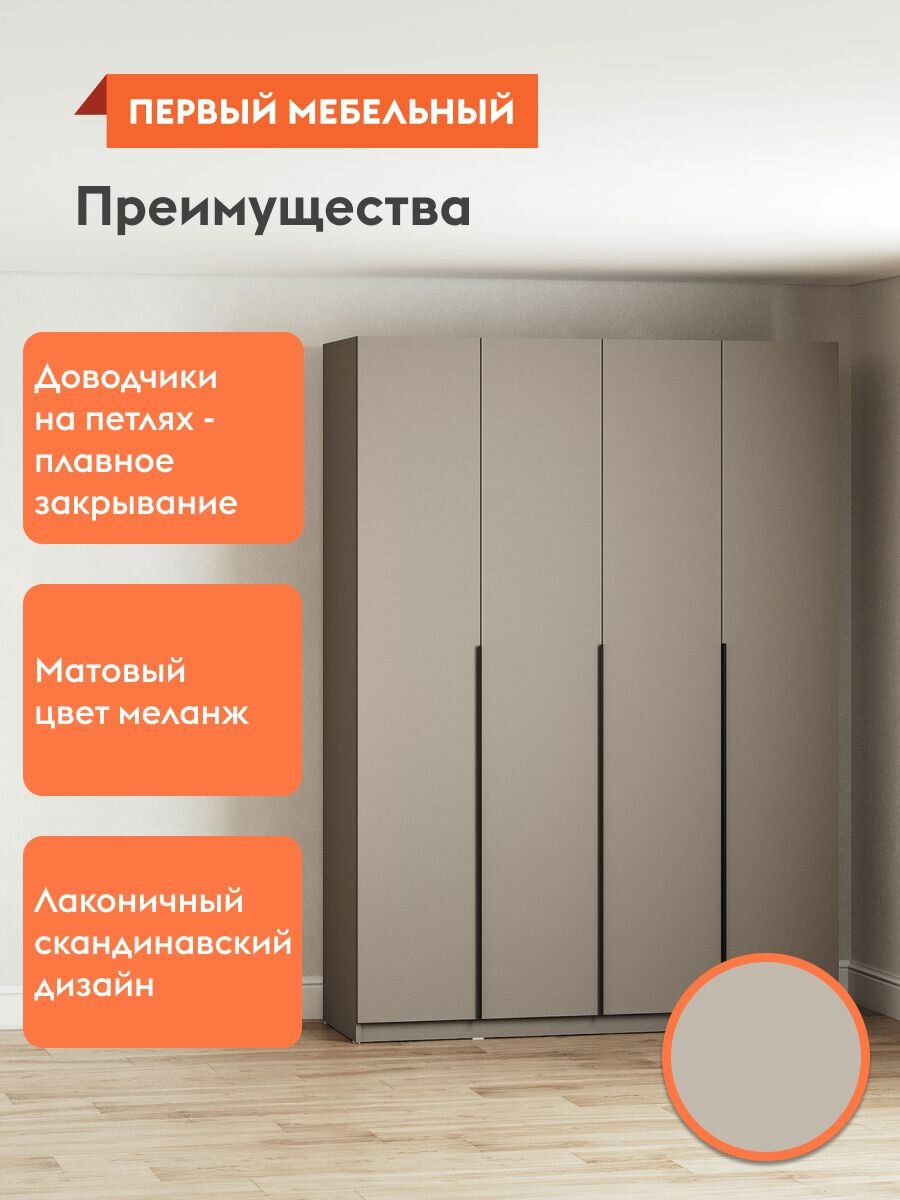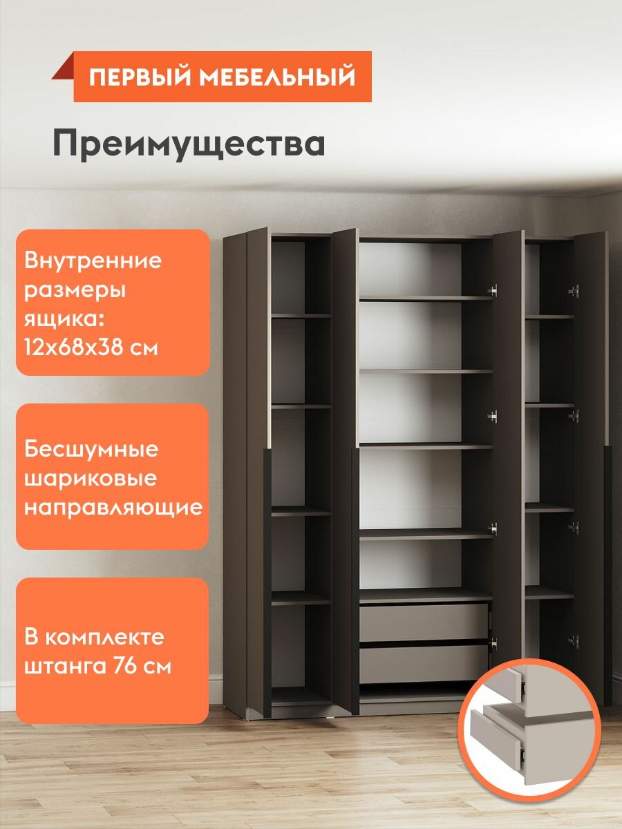 Отзывы на Шкаф распашной для одежды и хранения вещей Арно с полками, с ящиками, с доводчиками, 160.1х50.6х221.6 см, Меланж