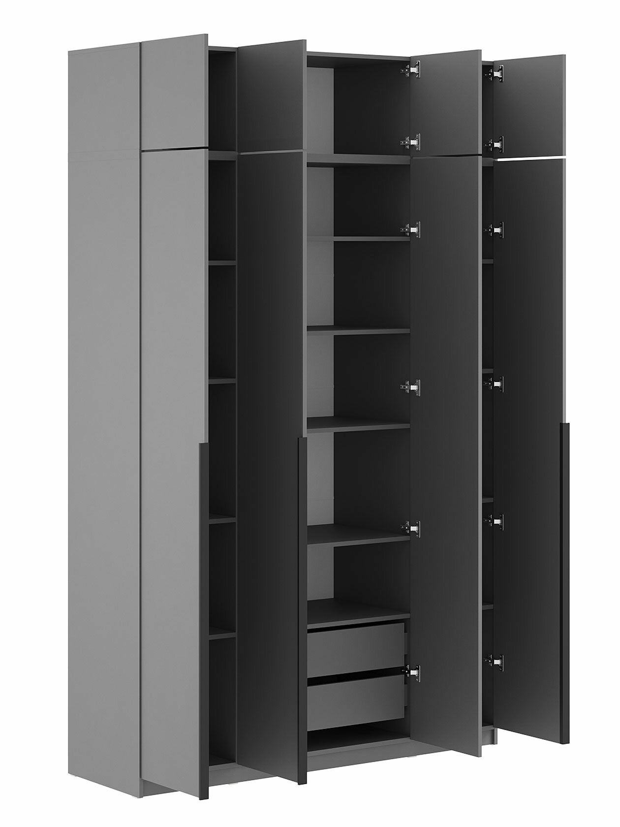 Шкаф распашной для одежды Арно с полками, с ящиками, с доводчиками, 160.1х50.6х221.6 см, Графит 25 050 ₽