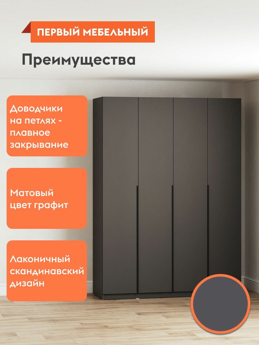 Отзывы на Шкаф распашной для одежды Арно с полками, с ящиками, с доводчиками, 160.1х50.6х221.6 см, Графит