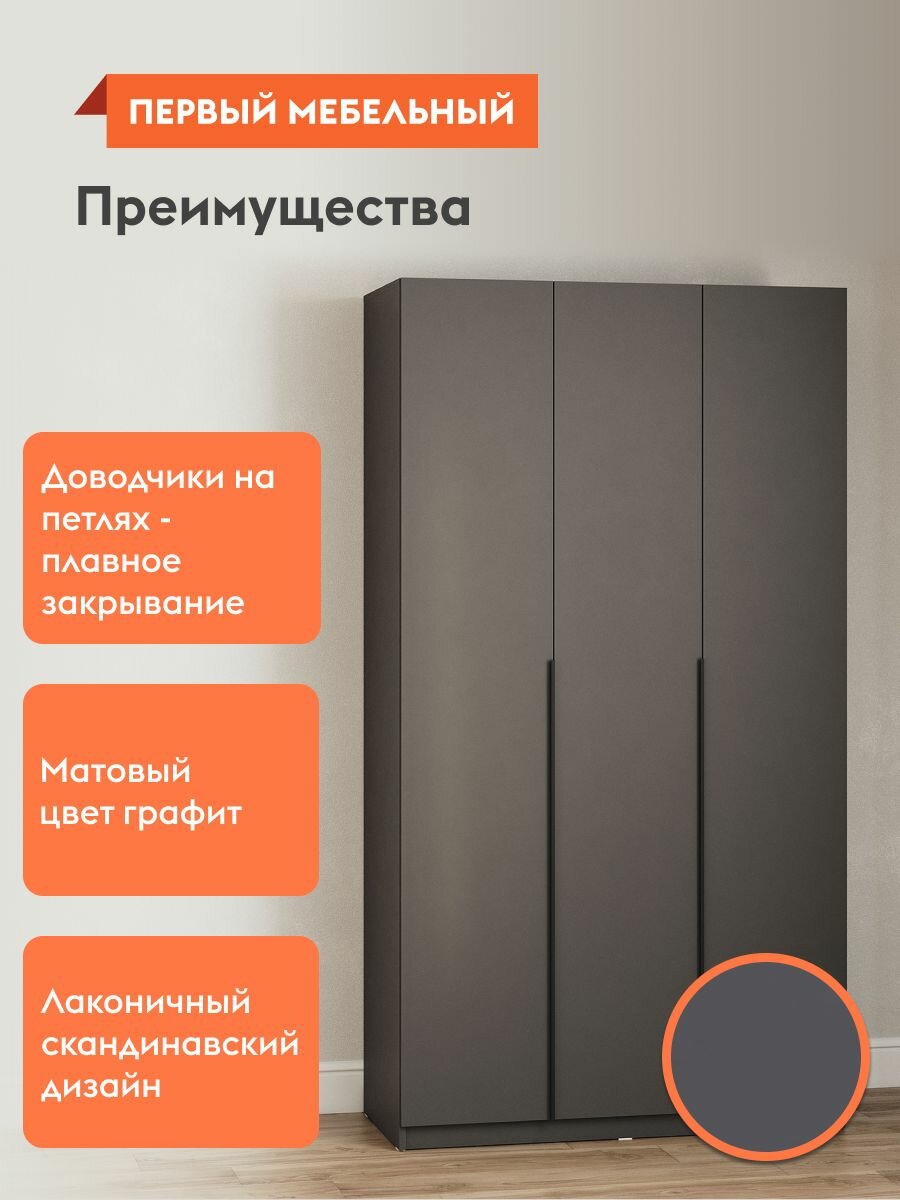 Шкаф распашной для одежды и хранения вещей Арно с полками, с ящиками, с доводчиками, 120.1х50.6х221.6 см, Графит информация: