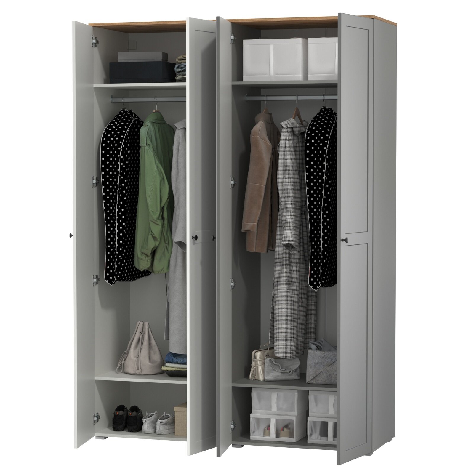 Шкаф для одежды распашной Нонтон Луас, 2 шт, 320 см, 20 полок и 2 штанги, эндгрейн / меланж
