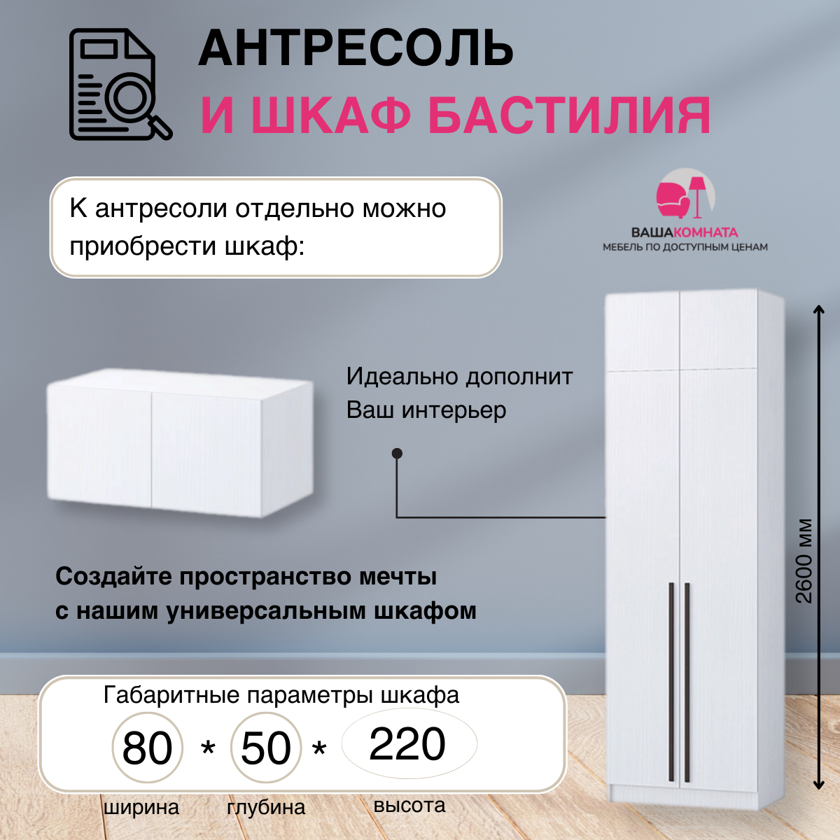 Вашакомната Антресоль Бастилия, 80х52х40 см к шкафу распашному, цвет белый древесный, материал ЛДСП информация: