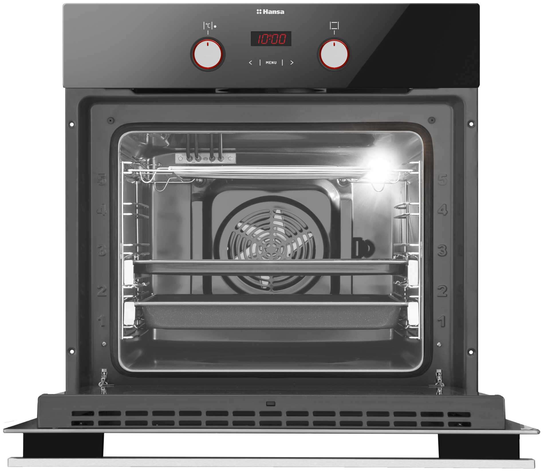 Электрический духовой шкаф Hansa BOES69475 встраиваемый 60 см, 65 л, 10 режимов, с дисплеем, таймером, функцией 3D нагрева, конвекцией, грилем и телескопическими направляющими 48 490 ₽
