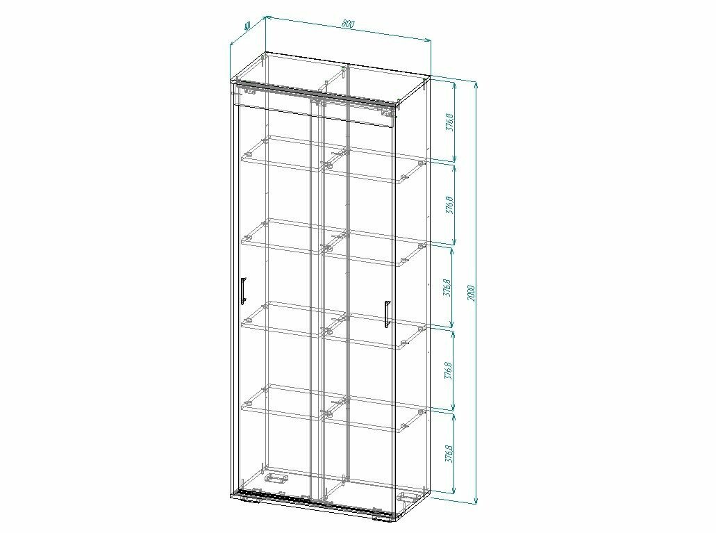 Шкаф распашной Калифорния-2 с антресолью Сумеречный Голубой для одежды двухдверный 70*210*40 Мегамебель