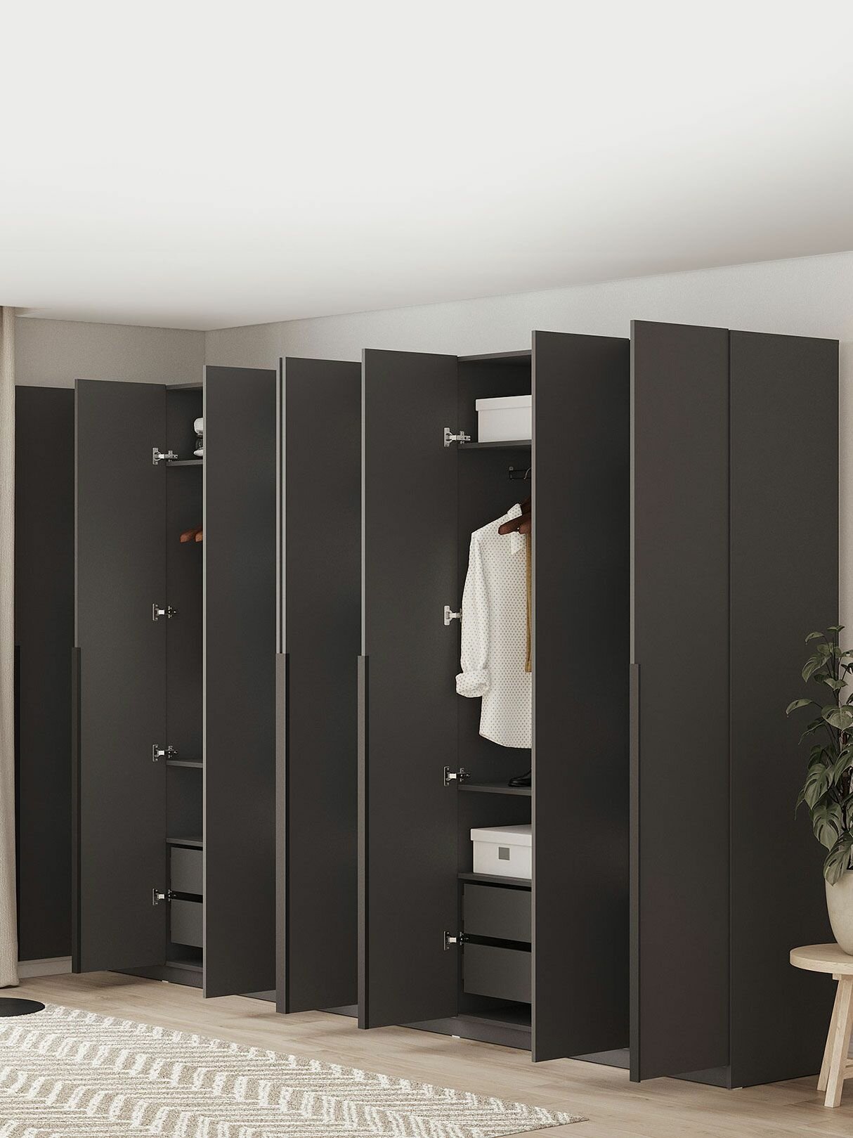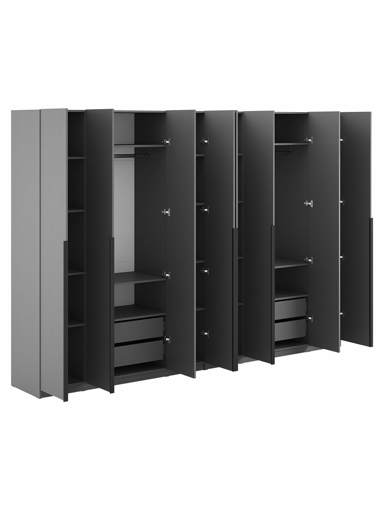 Шкаф распашной для одежды Арно с полками, с ящиками, со штангой, с доводчиками, 320.2х50.6х221.6 см, Графит информация: