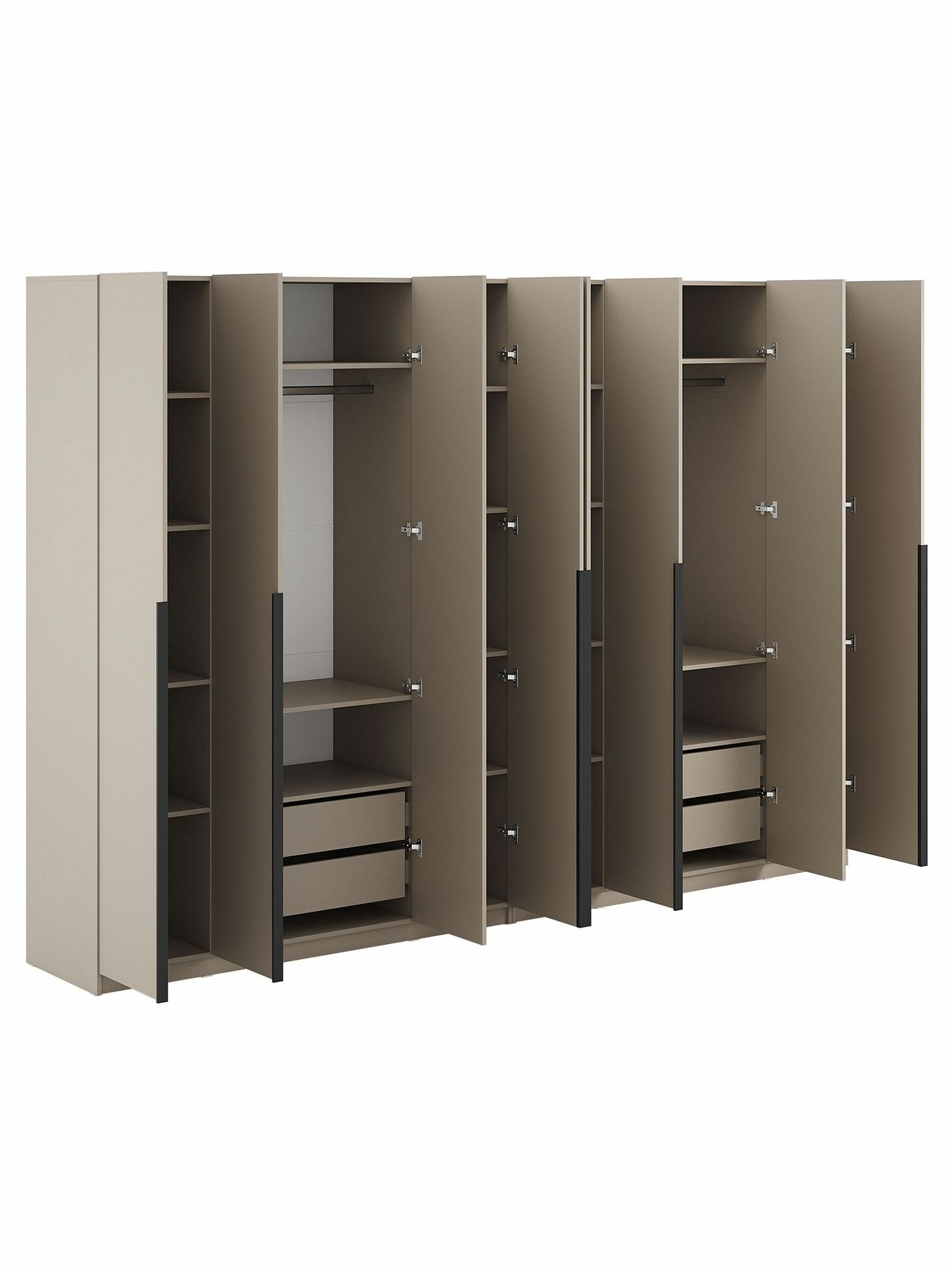 10 цен на Распашной шкаф для одежды и хранения вещей Арно с полками, с ящиками, со штангой, с доводчиками, 320.2х50.6х221.6 см, Меланж