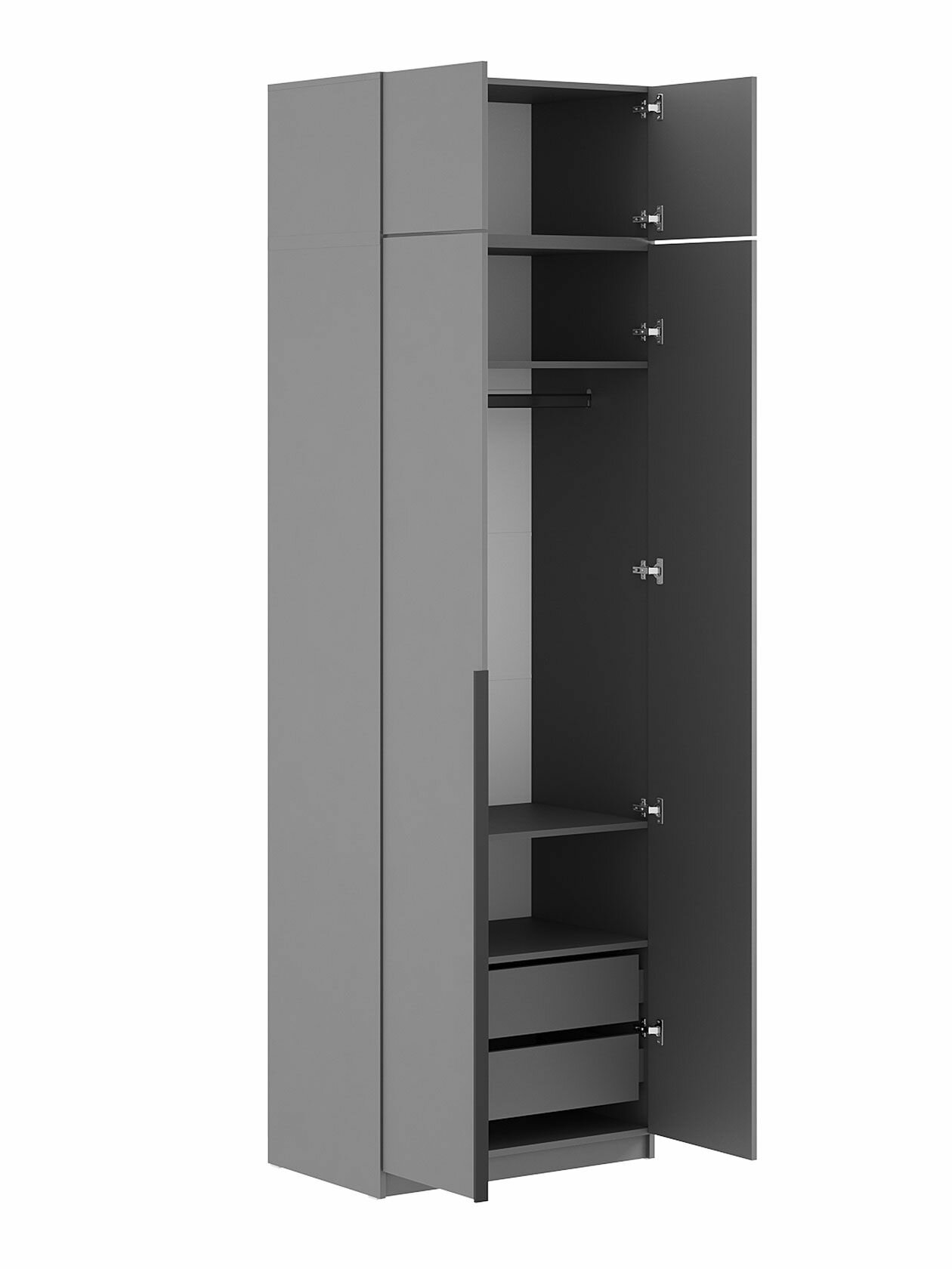 Шкаф распашной для одежды и хранения вещей Арно с ящиками, с антресолью, 80.1х50.6х260 см, Графит информация: