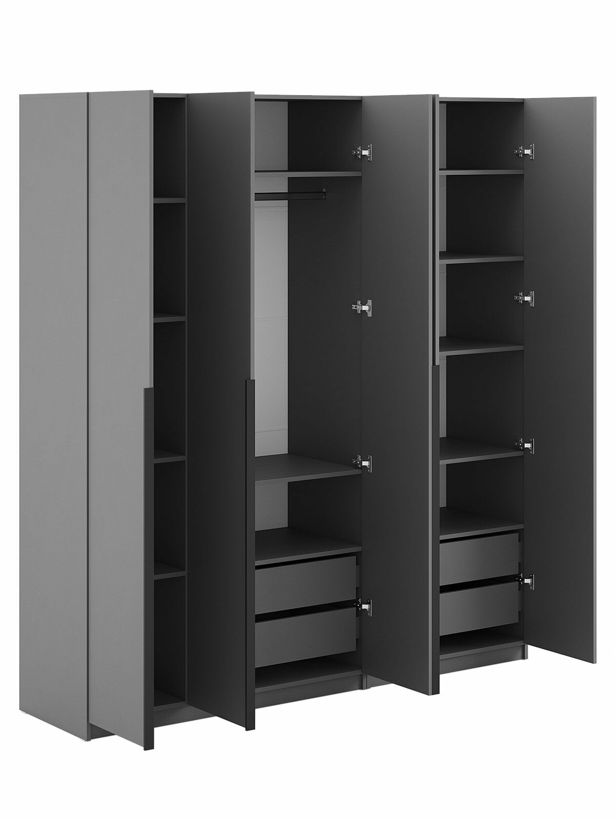 Шкаф распашной для одежды Арно с полками, с ящиками, со штангой, с доводчиками, 240.2х50.6х221.6 см, Графит 38 680 ₽