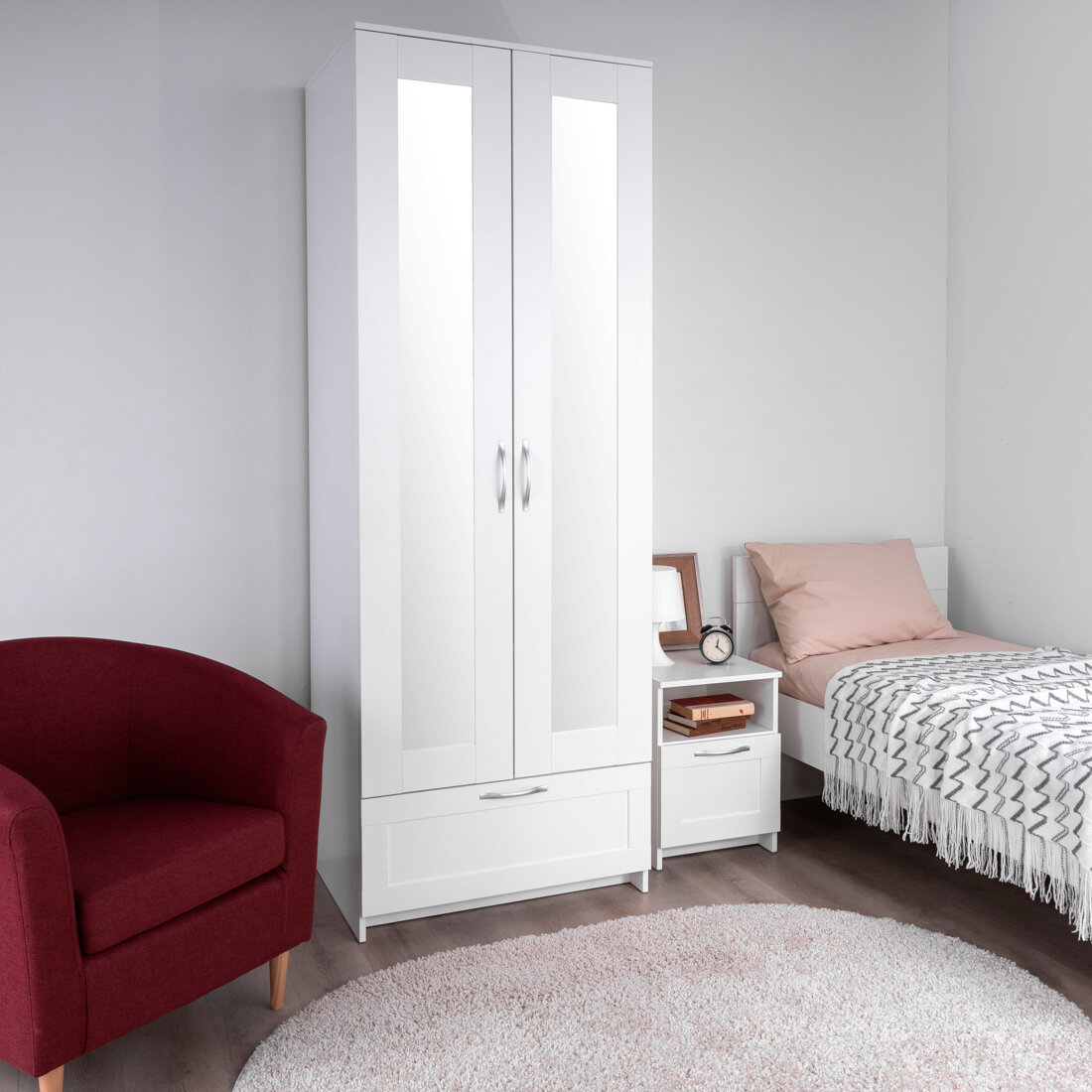 Шкаф ГУД ЛАКК Сириус, 2 двери и 1 ящик с зеркалом, 220х78х59 см, белый информация: