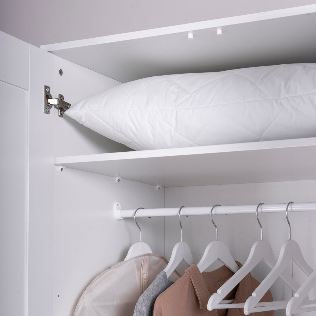 Шкаф для одежды распашной Нонтон Луас, 120 см, 7 полок и штанга, белый глянец
