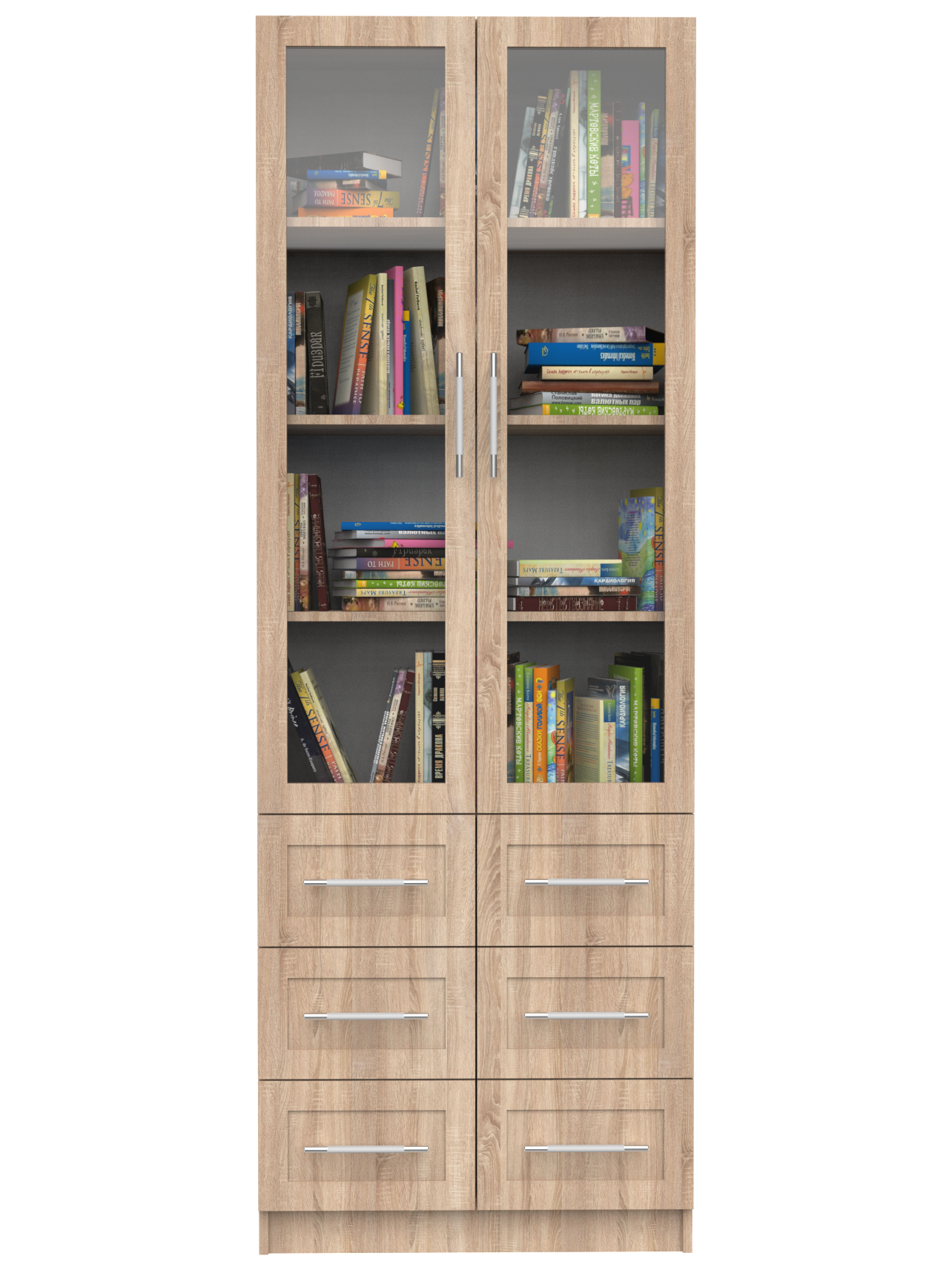 Отзывы на Шкаф книжный двухстворчатый Вита 2-5 с 6 ящиками, ШхГхВ: 68х38х210 см, дуб сонома