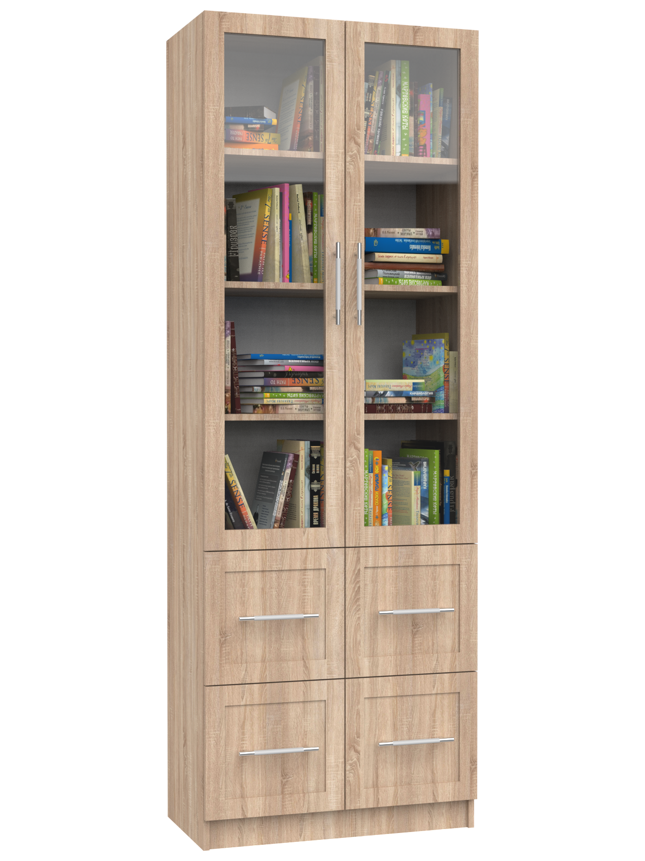 Отзывы на Шкаф книжный двухстворчатый Вита 2-4 с 4 ящиками, ШхГхВ: 68х38х210 см, дуб сонома
