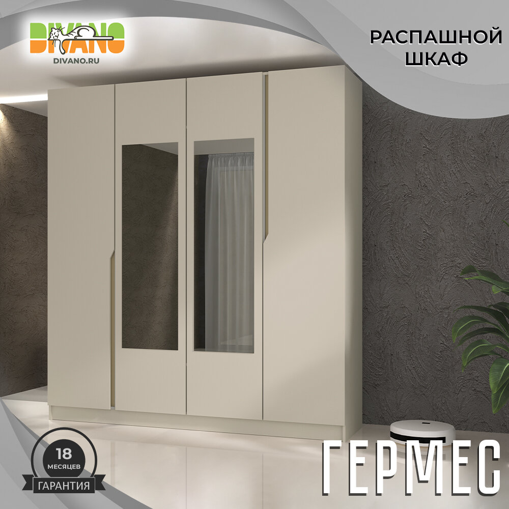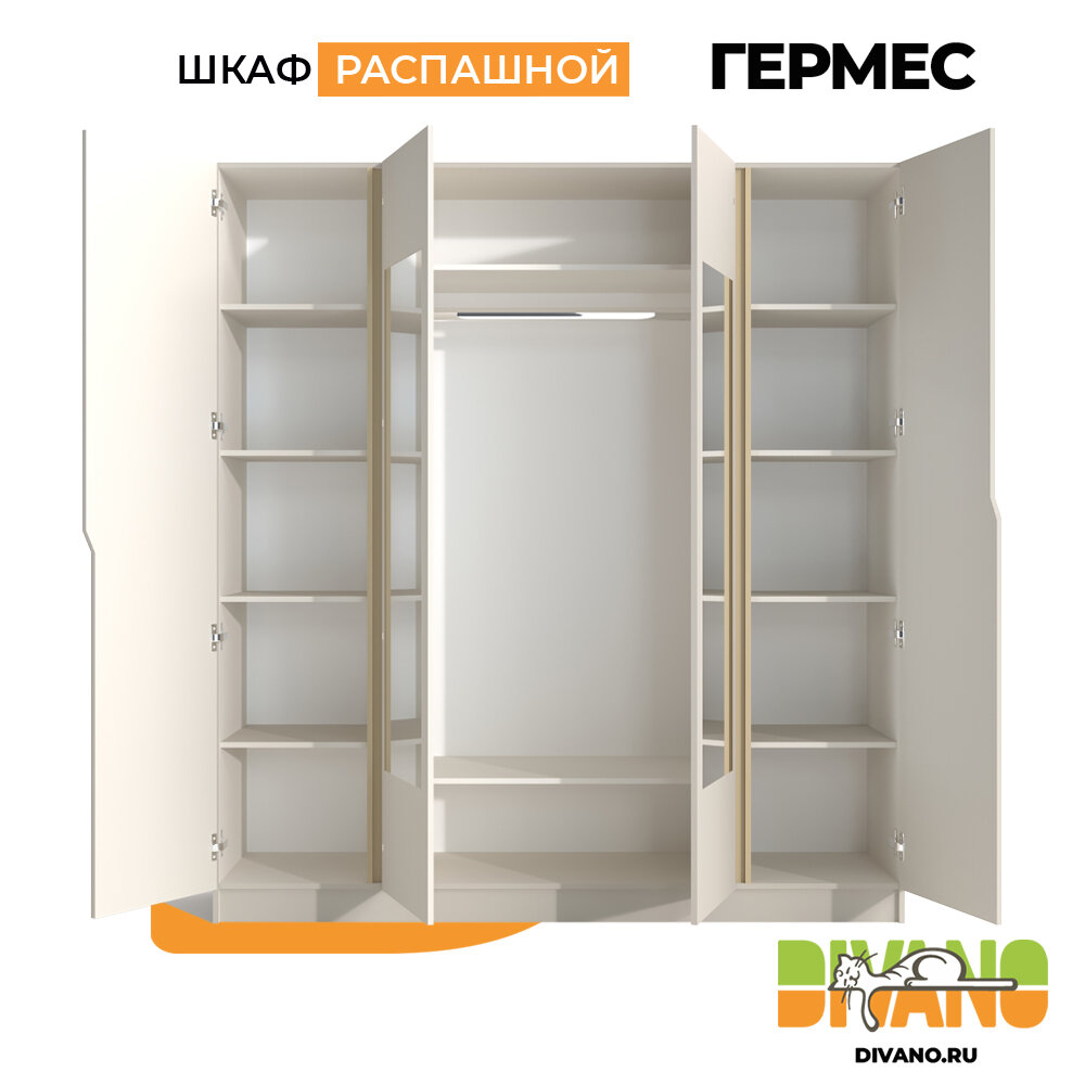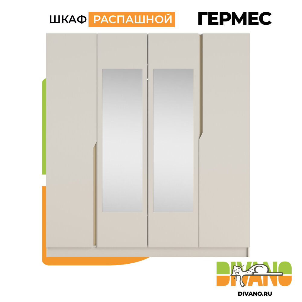 10 цен на Шкаф распашной Гермес 4-х дверный с 2-мя зеркалами 2.0 м (кашемир)