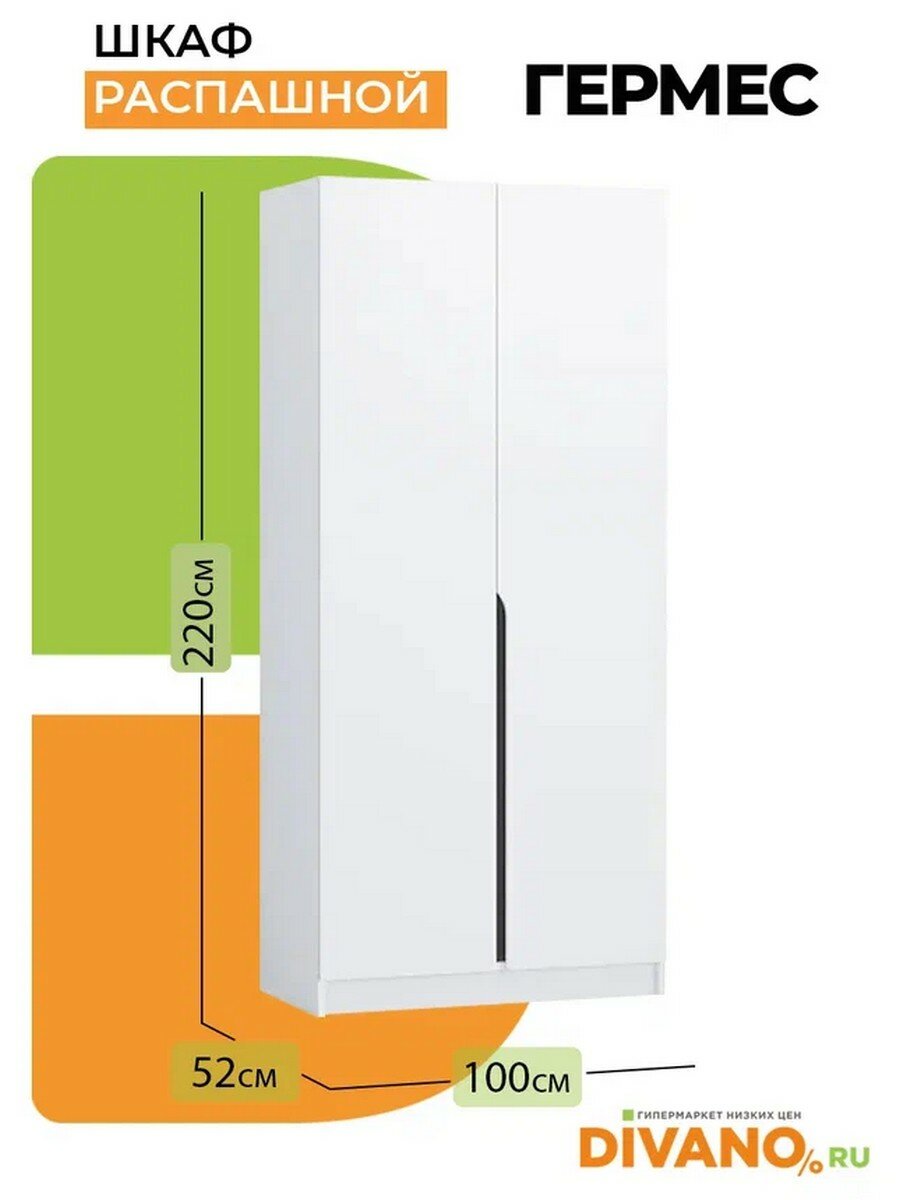 Шкаф распашной Гермес 2-х дверный без зеркал 1.0 м (белый) информация: