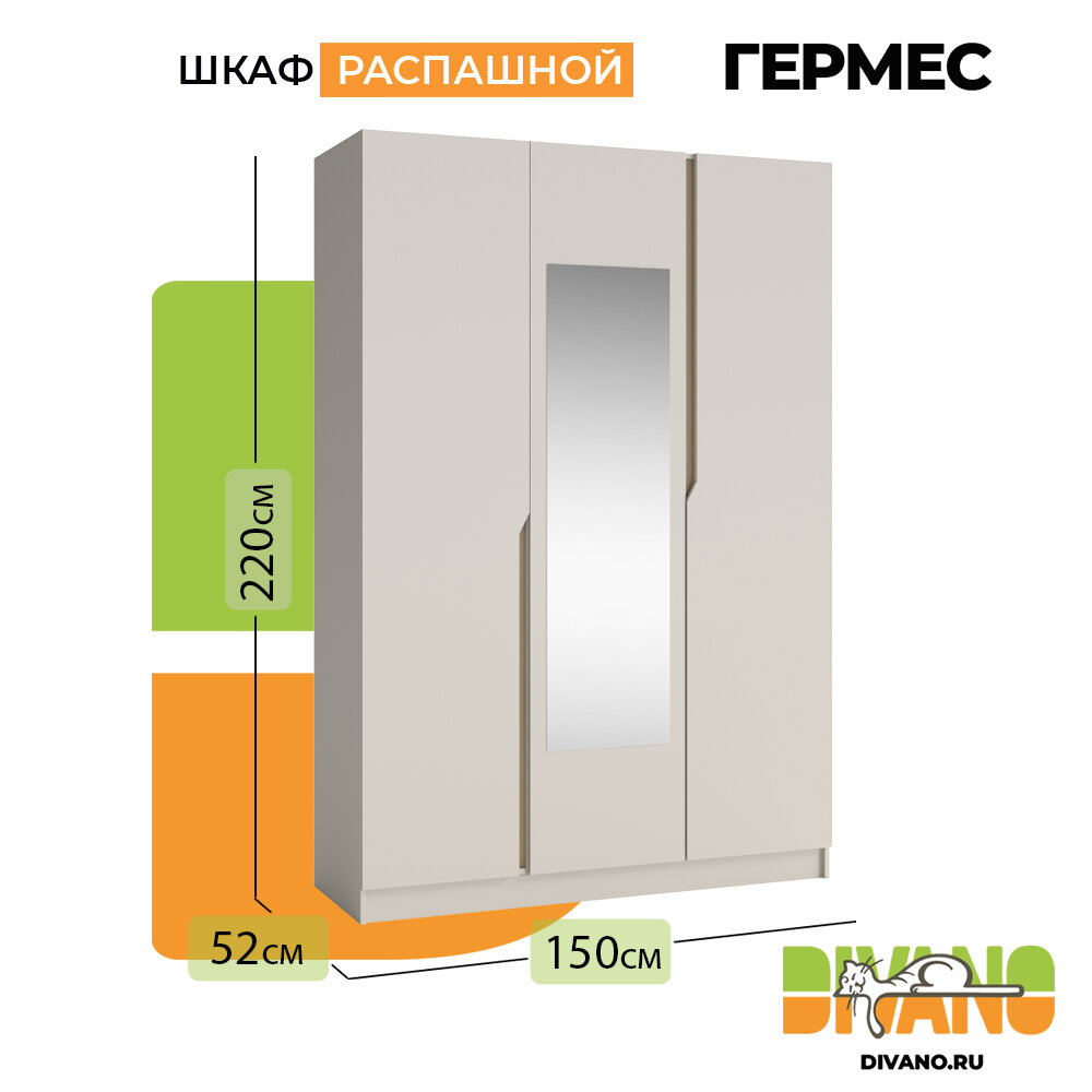 Шкаф распашной Гермес 3-х дверный с зеркалом 1.5 м (кашемир) информация: