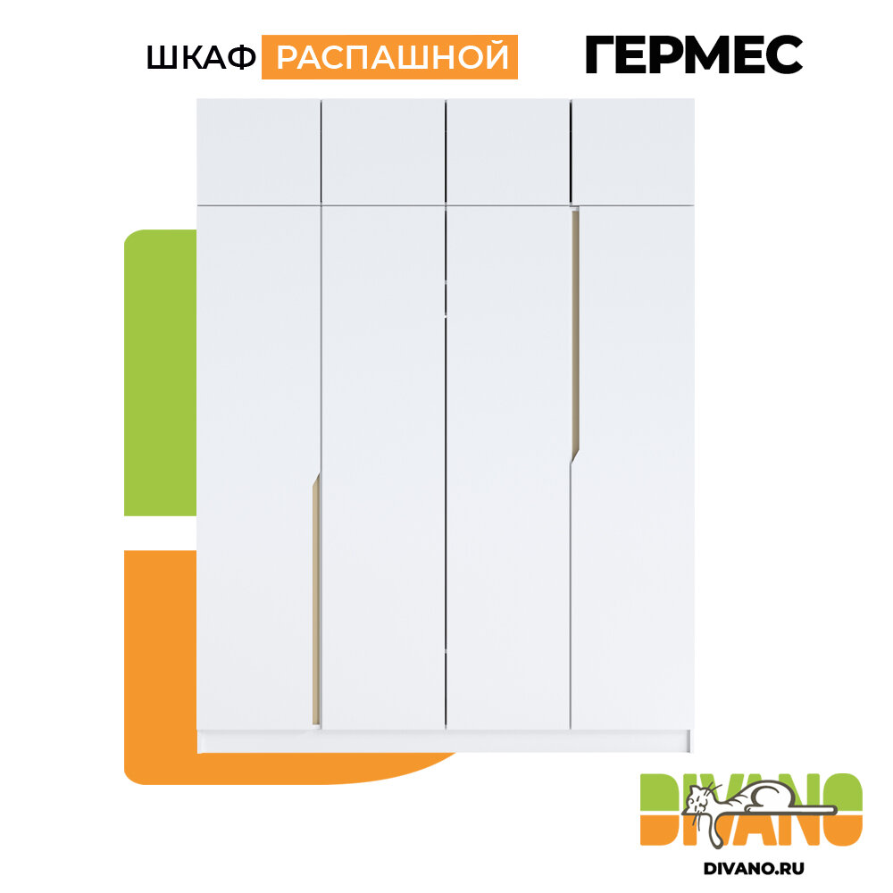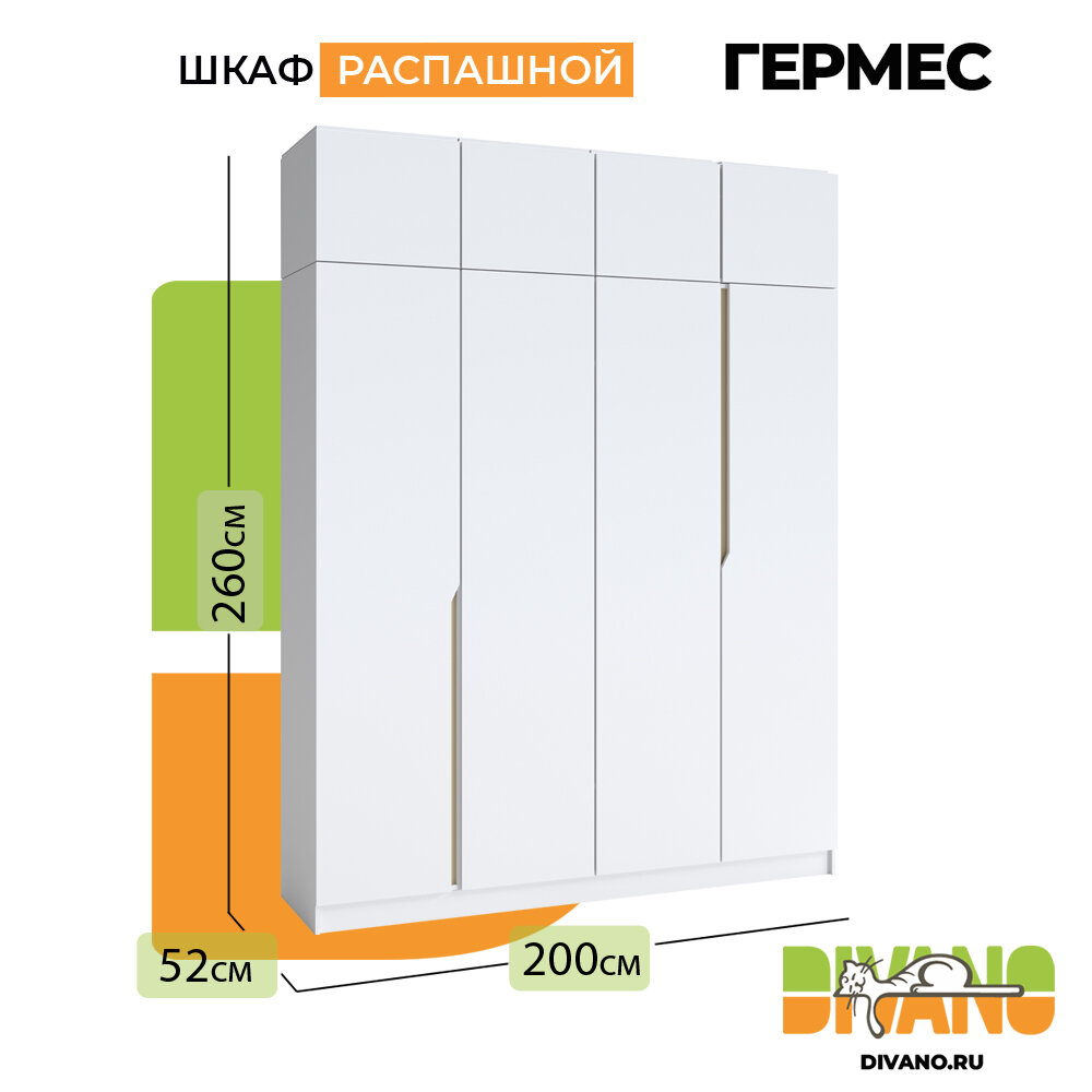 Шкаф распашной Гермес 4-х дверный с антресолью 2.0 м (белый) информация: