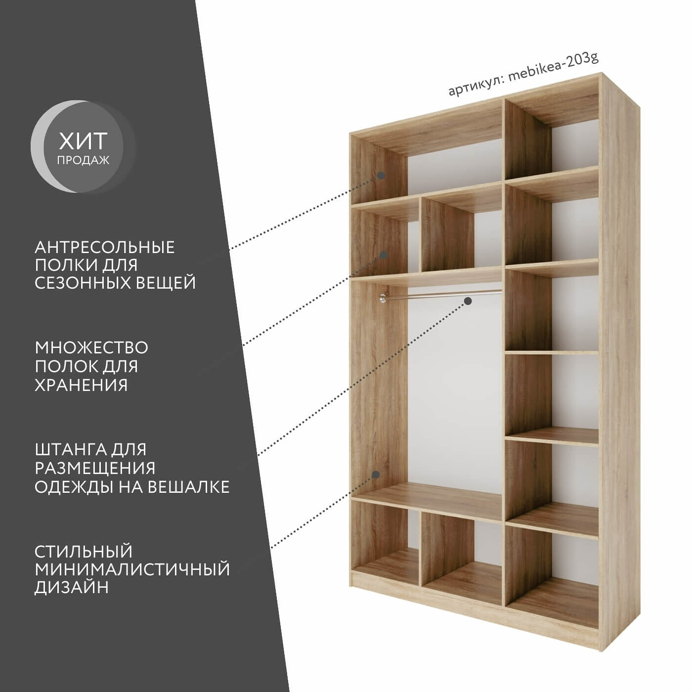 10 цен на Шкаф Mebikea-203g распашной дуб сонома современный минимализм для прихожей и спальни