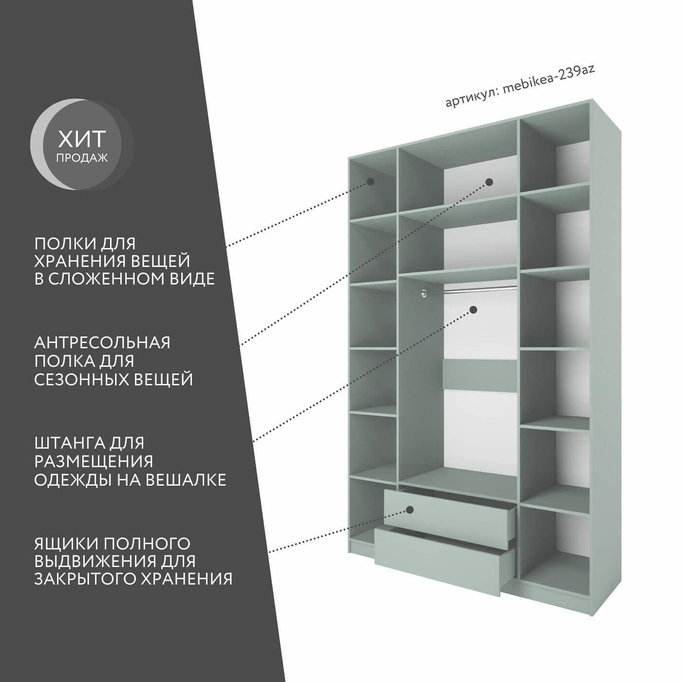 10 цен на Шкаф Mebikea-239az распашной сумеречный голубой современный минимализм для прихожей и спальни