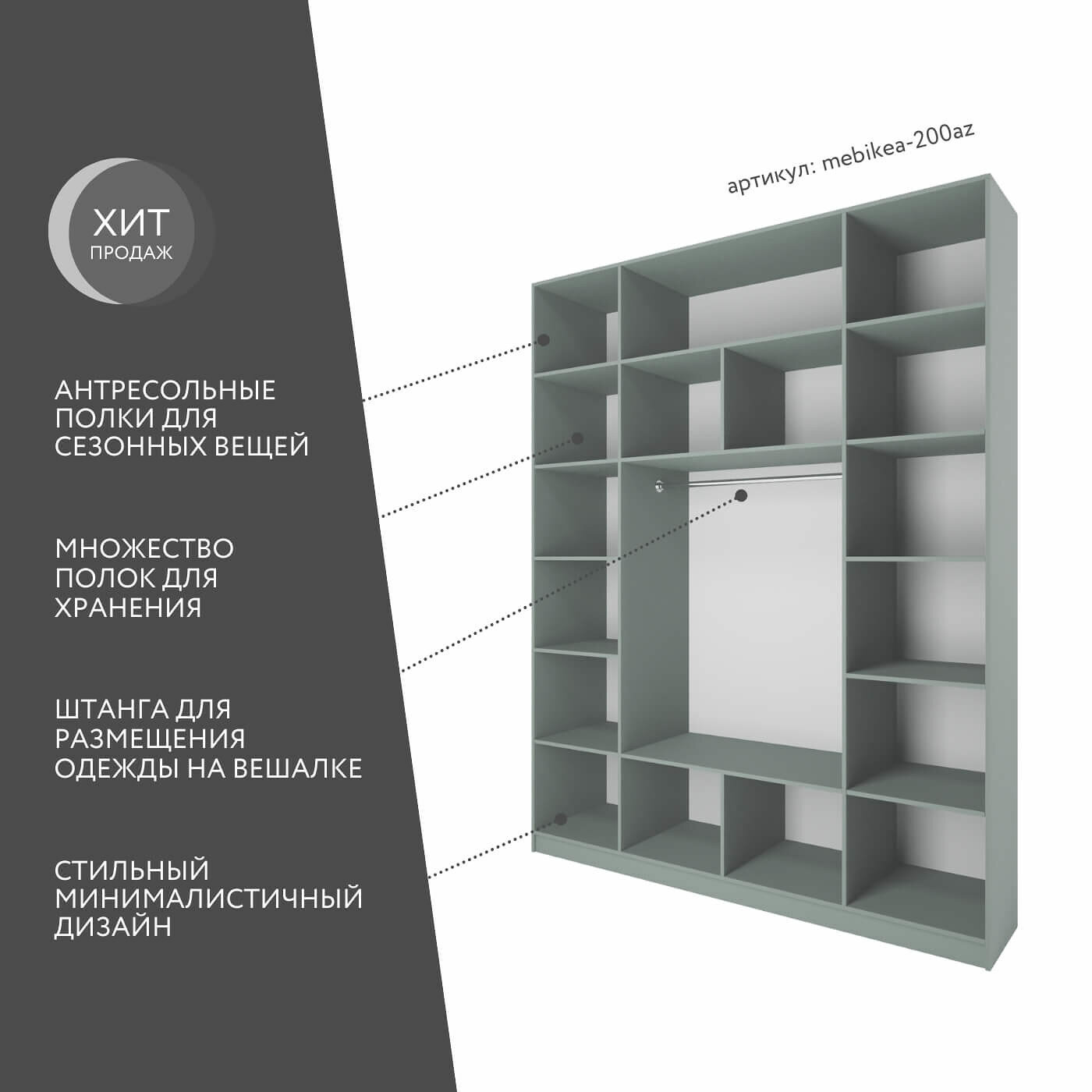 Отзывы на Шкаф Mebikea-200az распашной сумеречный голубой современный минимализм для прихожей и спальни
