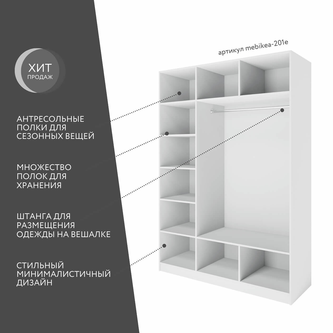 Мы выбрали 10 лучших цен на Шкаф Mebikea-201e распашной белый современный минимализм для прихожей и спальни. Перед тем как купить Шкаф Mebikea-201e распашной белый современный минимализм для прихожей и спальни посмотрите найденные предложения из Яндекс Маркета и других сайтов на основе XML фидов.