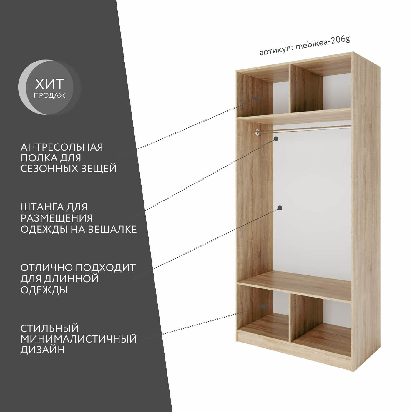 10 цен на Шкаф Mebikea-206g распашной дуб сонома современный минимализм для прихожей и спальни