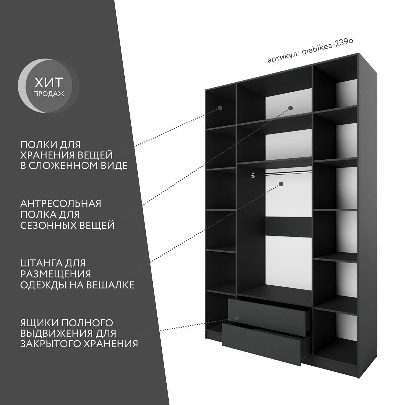 Шкаф Mebikea-234o антрацит современный минимализм для прихожей и спальни 40 920 ₽