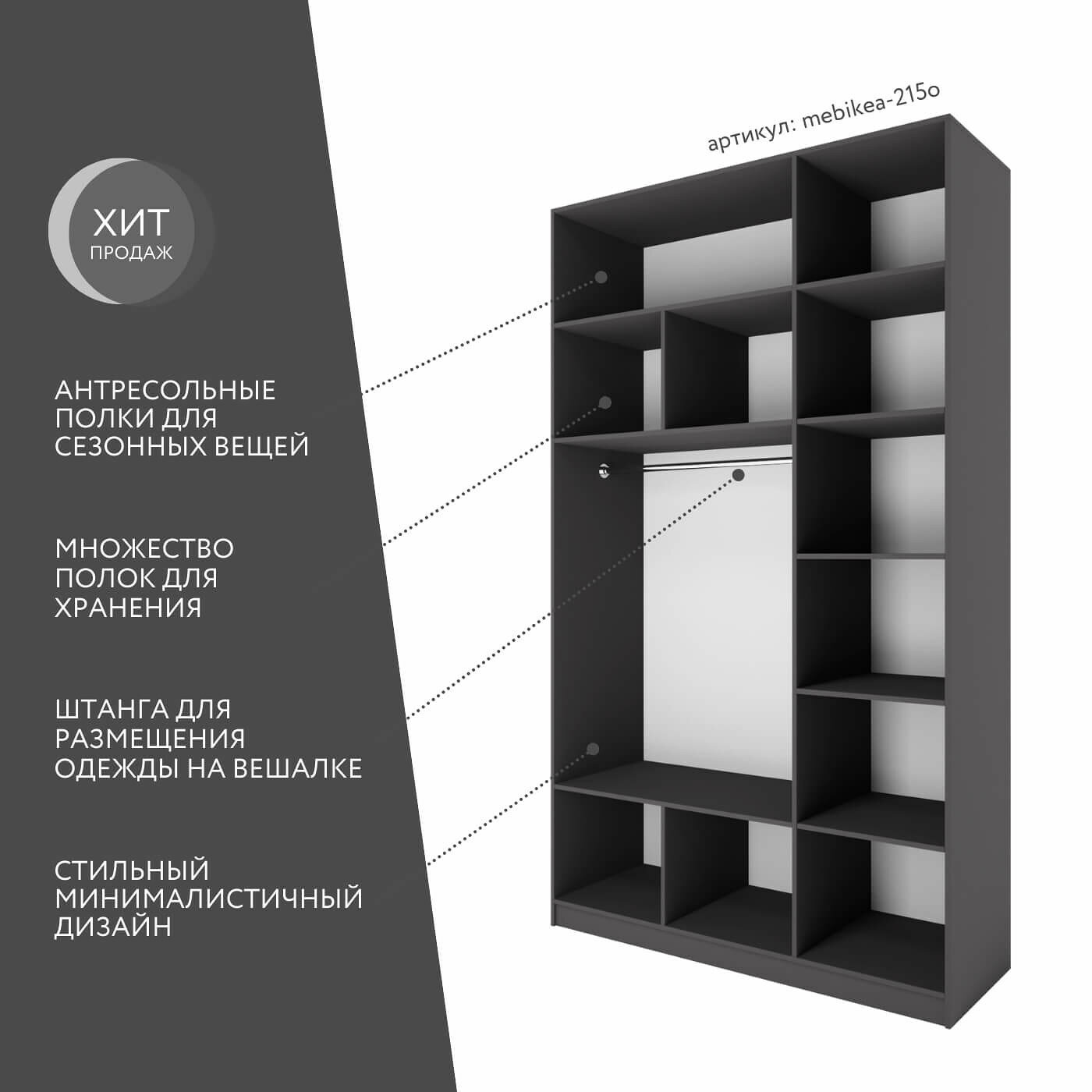 Шкаф Mebikea-234o антрацит современный минимализм для прихожей и спальни 40 920 ₽