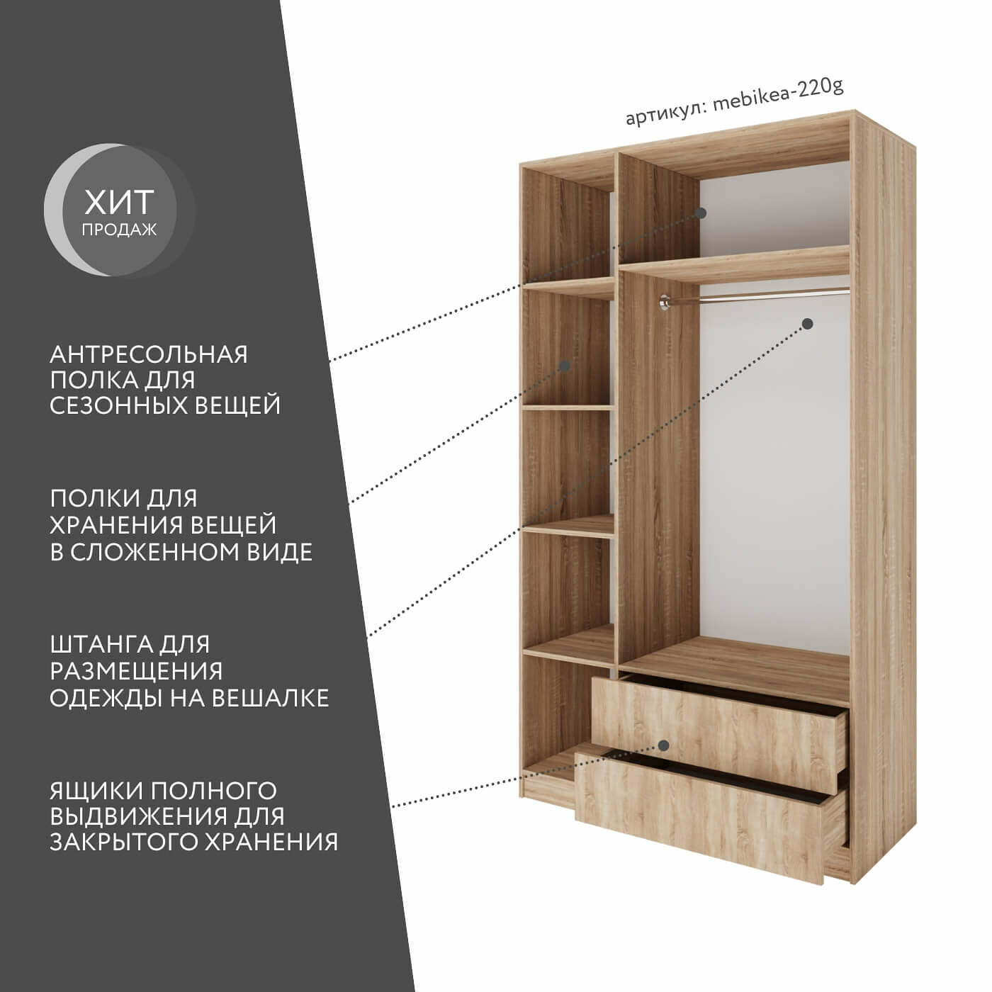 10 цен на Шкаф Mebikea-220g распашной дуб сонома современный минимализм для прихожей и спальни
