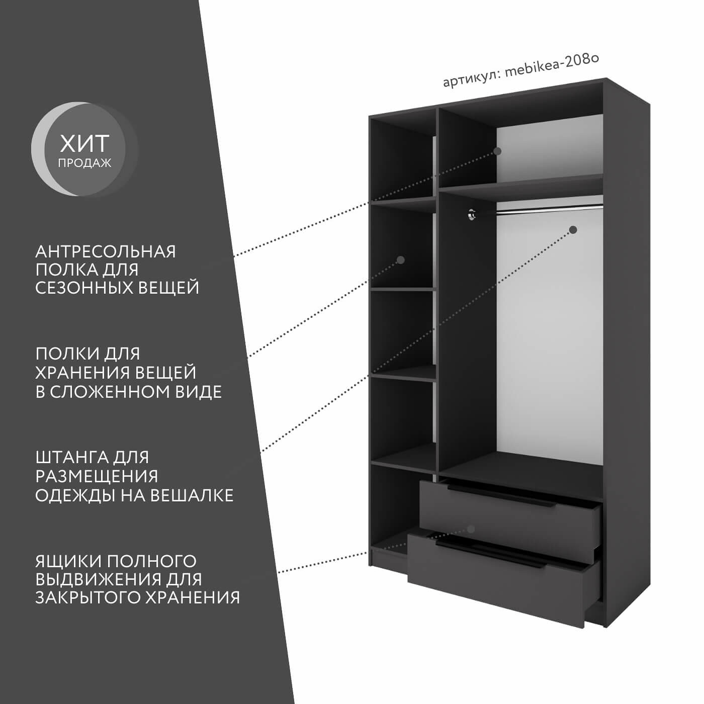 Шкаф Mebikea-208o распашной антрацит современный минимализм для прихожей и спальни информация: