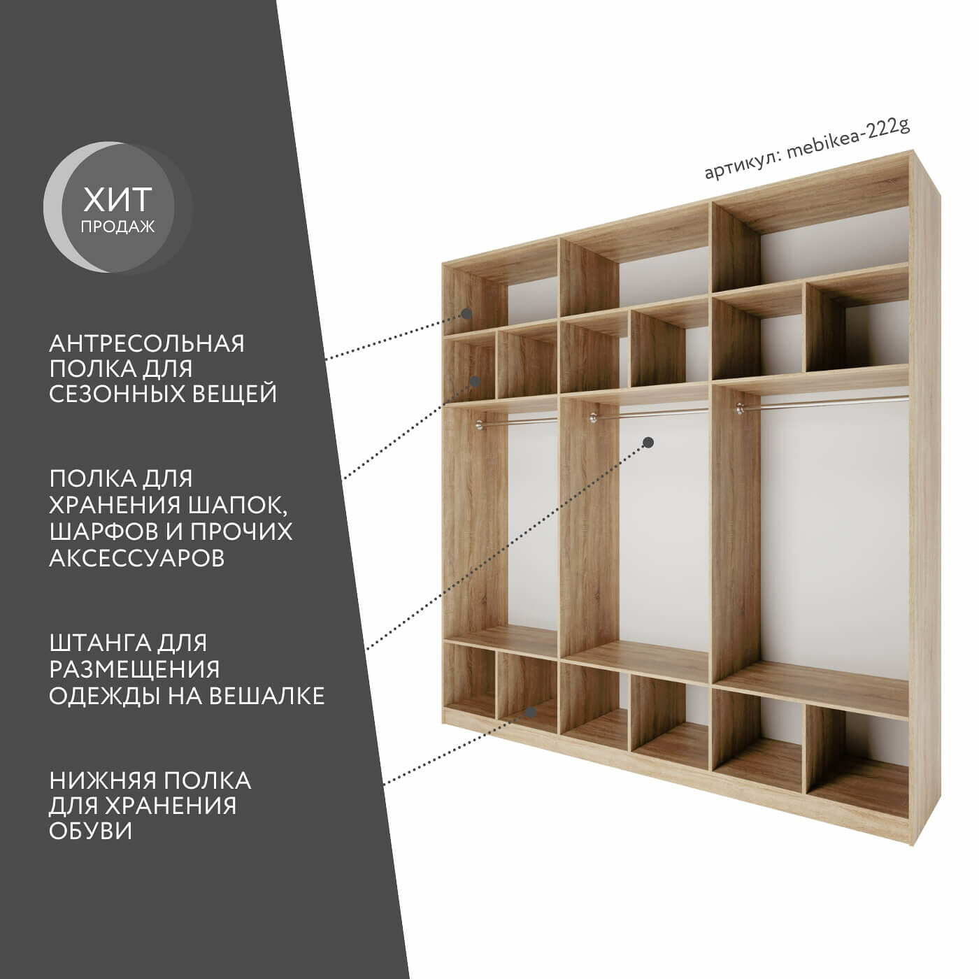 10 цен на Шкаф Mebikea-222g распашной дуб сонома современный минимализм для прихожей и спальни