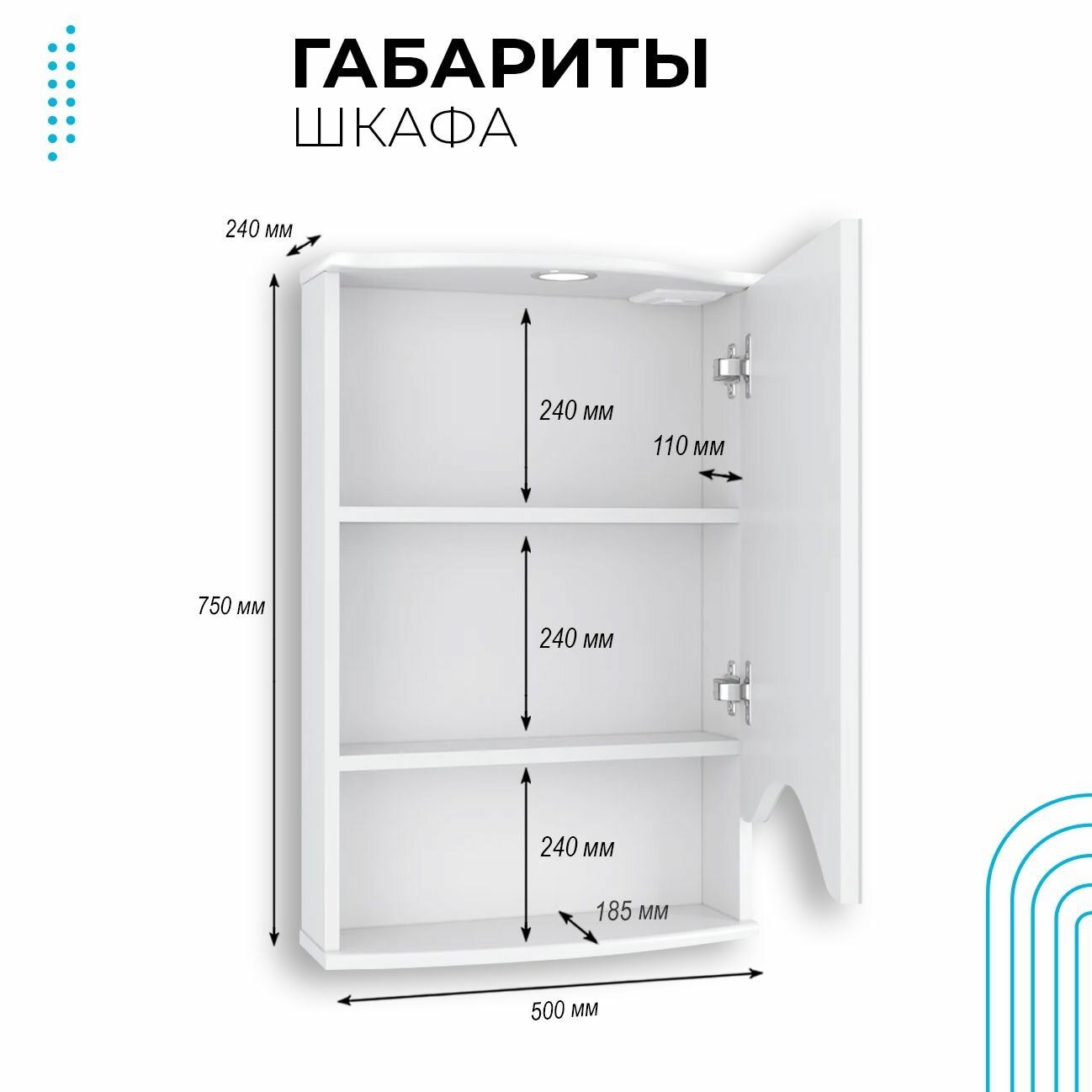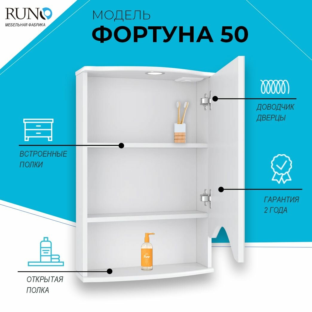 Шкаф в ванную с зеркалом Runo Фортуна 50, с подсветкой, правый информация: