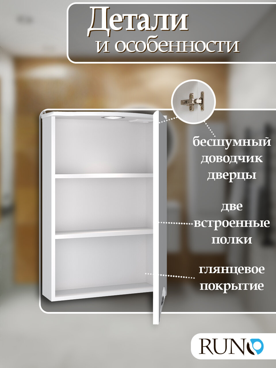 Шкаф в ванную с зеркалом Runo Ибица 50, правый, с подсветкой информация: