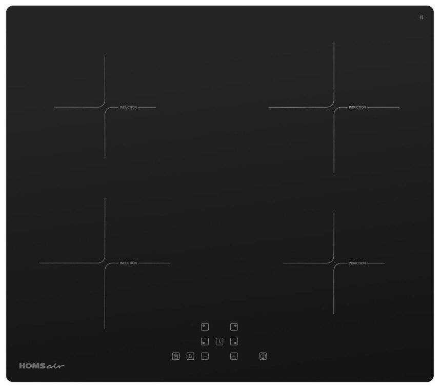 Встраиваемая индукционная панель HOMSair/ индукционная, ШхДхВ: 590х520х62 мм, сенсорное управление, 4 конфорки, стеклокерамика, замок от детей, таймер, черная