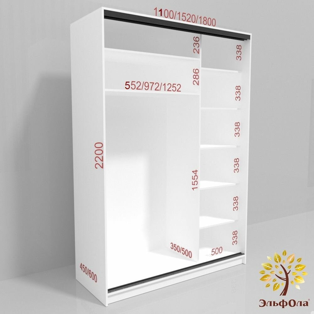Шкаф-купе ЭльфОла "Квадро" 152*45*220 см, белый шагрень, фасады зеркало информация: