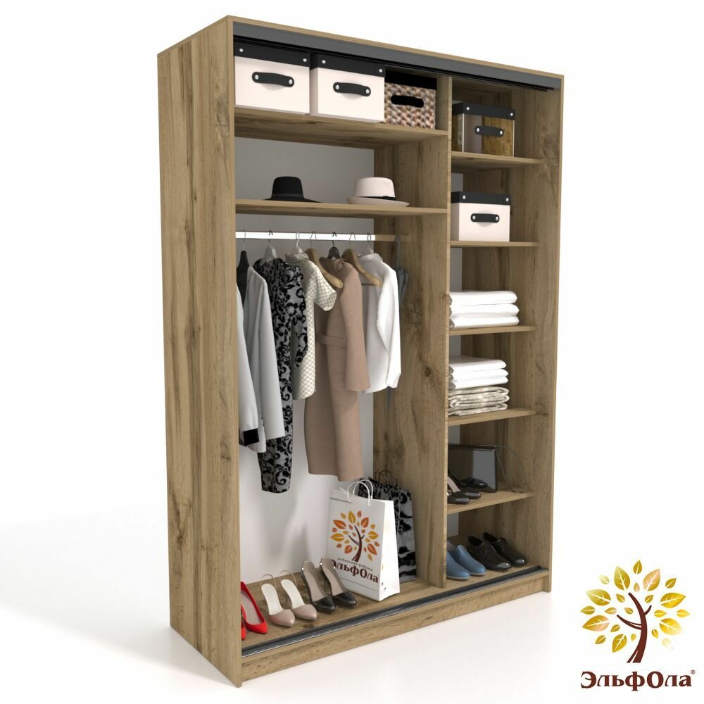 10 цен на Шкаф-купе ЭльфОла "Квадро" 152*60*220 см, дуб вотан, фасады зеркало