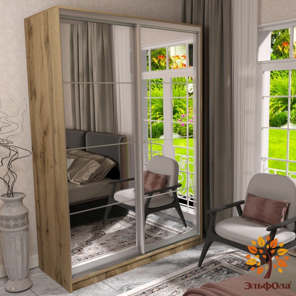 Шкаф-купе ЭльфОла "Квадро" 152*60*220 см, дуб вотан, фасады зеркало 30 975 ₽