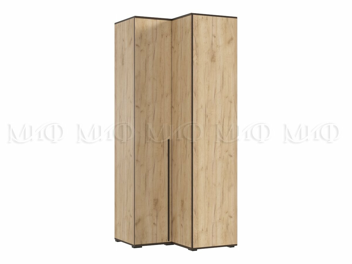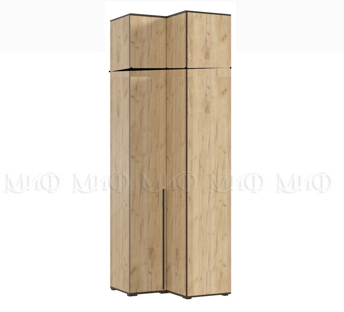 10 цен на Высокий угловой шкаф Миф Норд с антресолью, полками и штангой, цвет Дуб Крафт, размер 906х906 h2654мм, торец шкафа 510мм