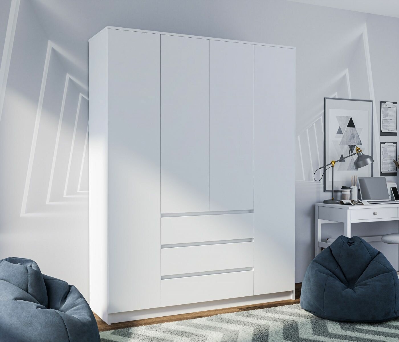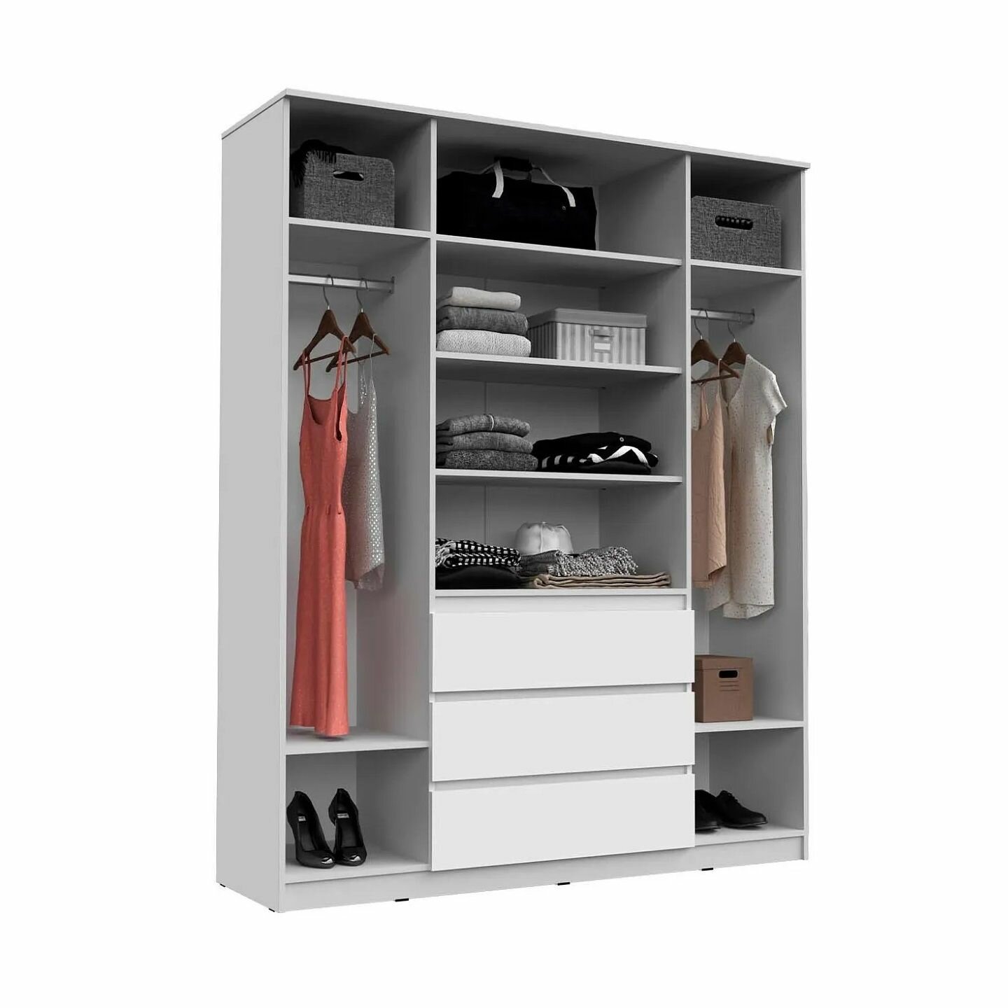 Шкаф распашной с ящиками Норд полки/штанга 160х50х210 см, Белый гладкий информация: