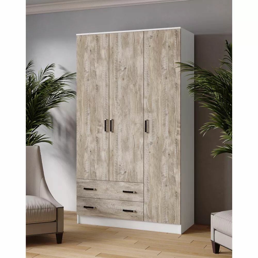 Шкаф для одежды распашной Нонтон Луас, 2 шт, 320 см, 20 полок и 2 штанги, эндгрейн / меланж