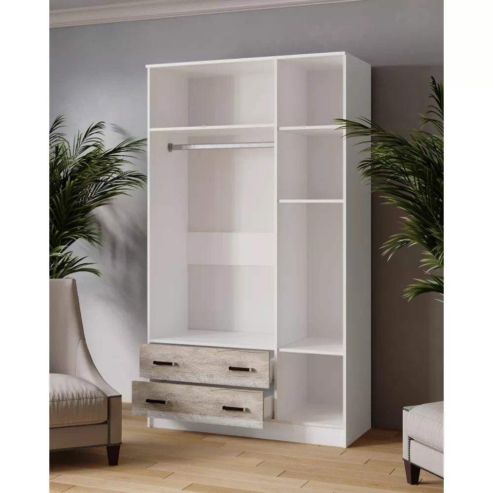 Шкаф для одежды распашной Нонтон Луас, 120 см, 7 полок и штанга, белый глянец