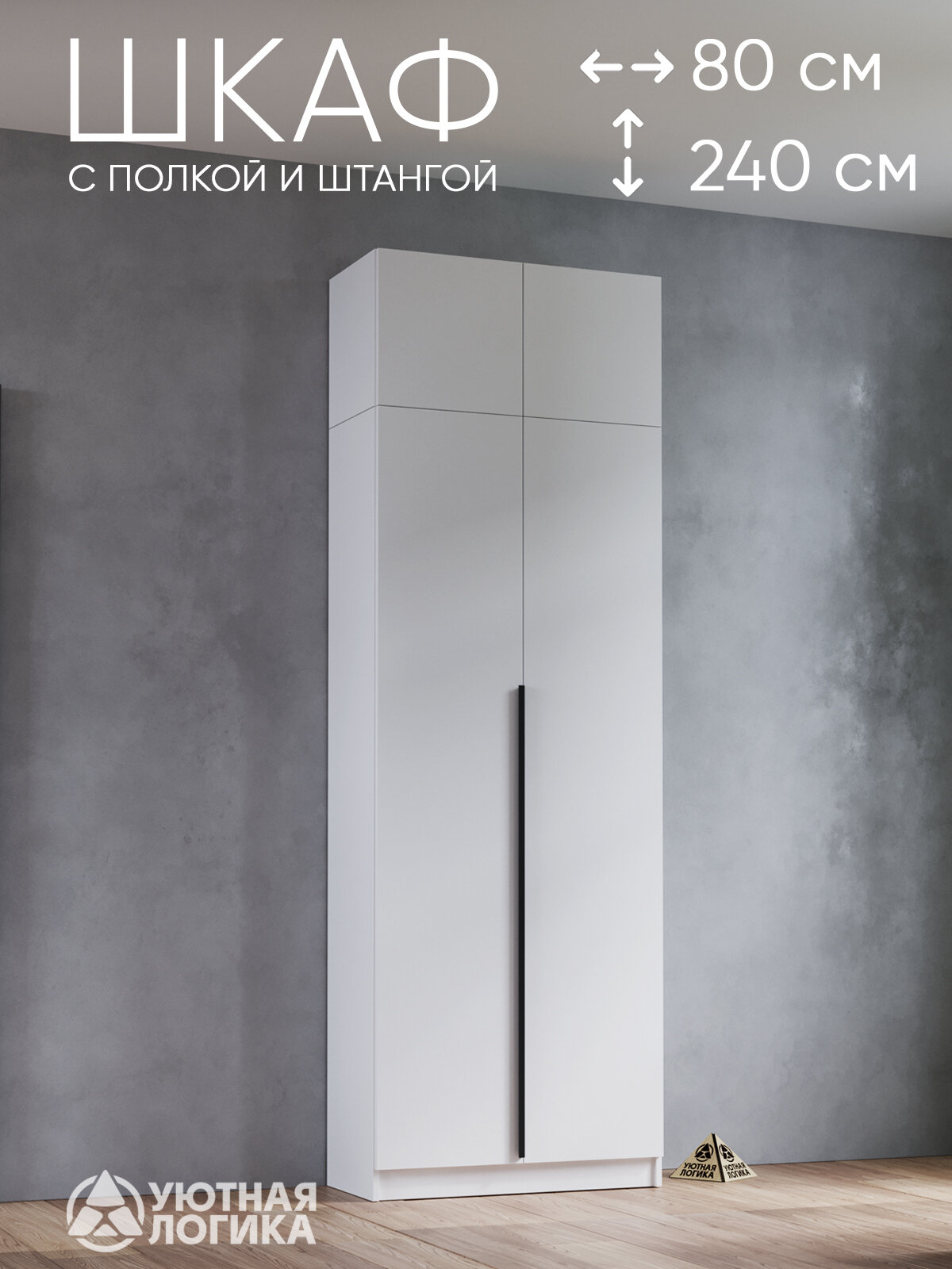 Шкаф распашной для одежды УЮТНАЯ ЛОГИКА двухдверный с антресолью и ручкой Дева А4НВР-175Л 240*80*38 см, Белый информация: